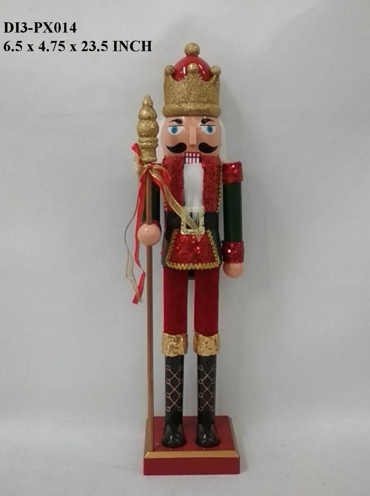 6.5x4.75x23.5" The Wooden Nutcracker is crafted with precision from high-quality wood, reflecting classic holiday craftsmanship and enduring durability. Its traditional design makes it an elegant addition to professional and upscale seasonal displays, offering both nostalgic charm and sophisticated decoration.
