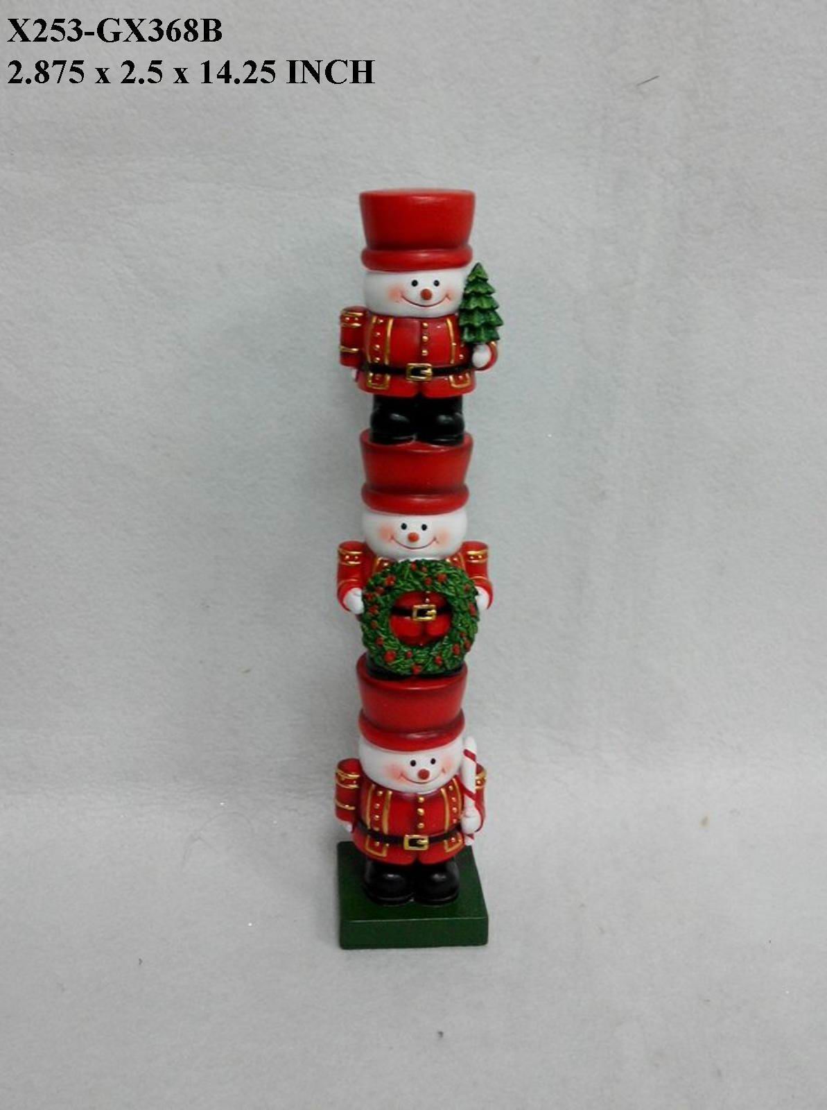 2.875x2.5x14.25 The Stacked Tiny Nutcracker is a meticulously crafted decorative piece that highlights fine detail in a compact form. Expertly designed, its layered construction adds visual interest and height, making it a distinguished addition to holiday decor or collectible displays. This piece offers both traditional charm and durable quality, ideal for enhancing festive settings with subtle elegance.