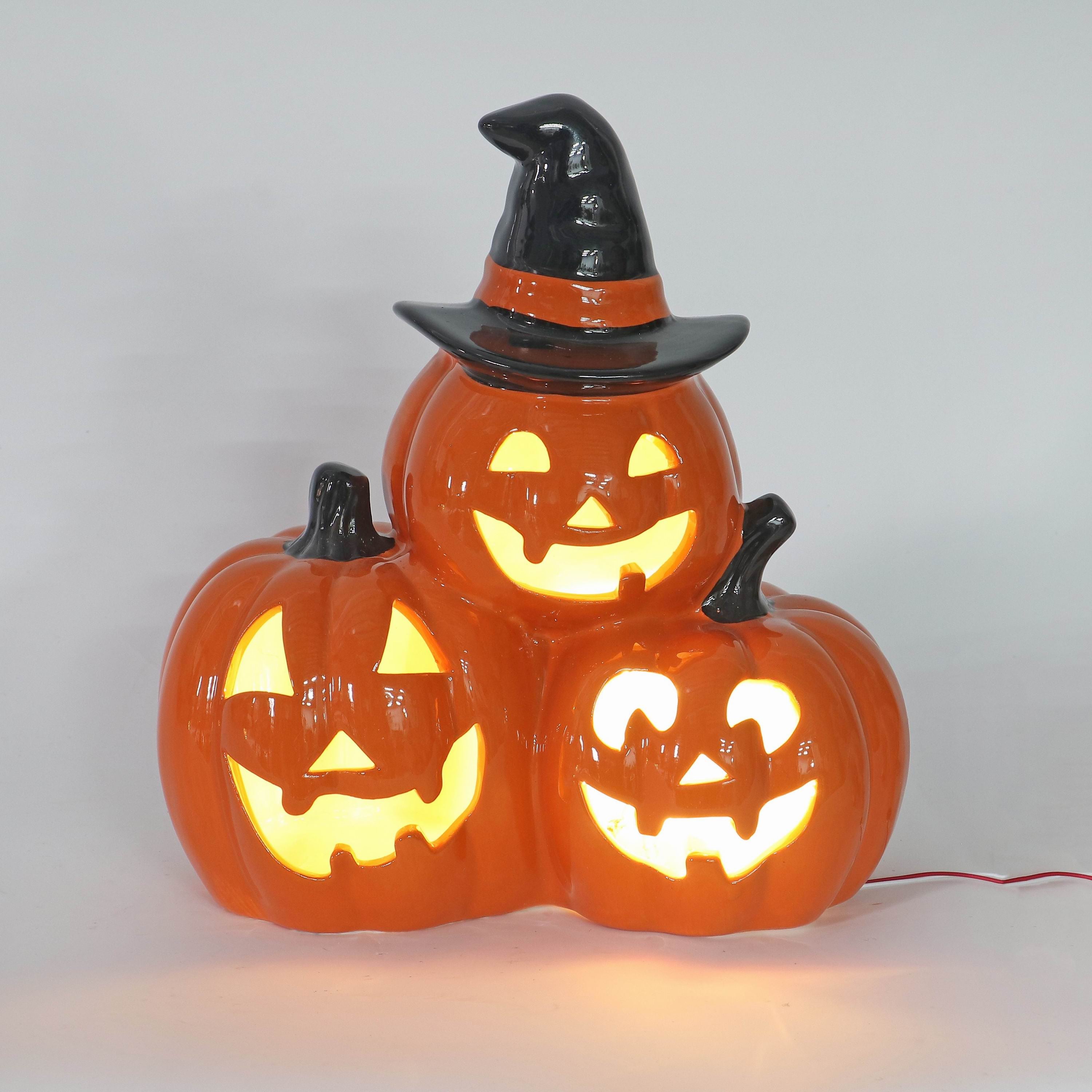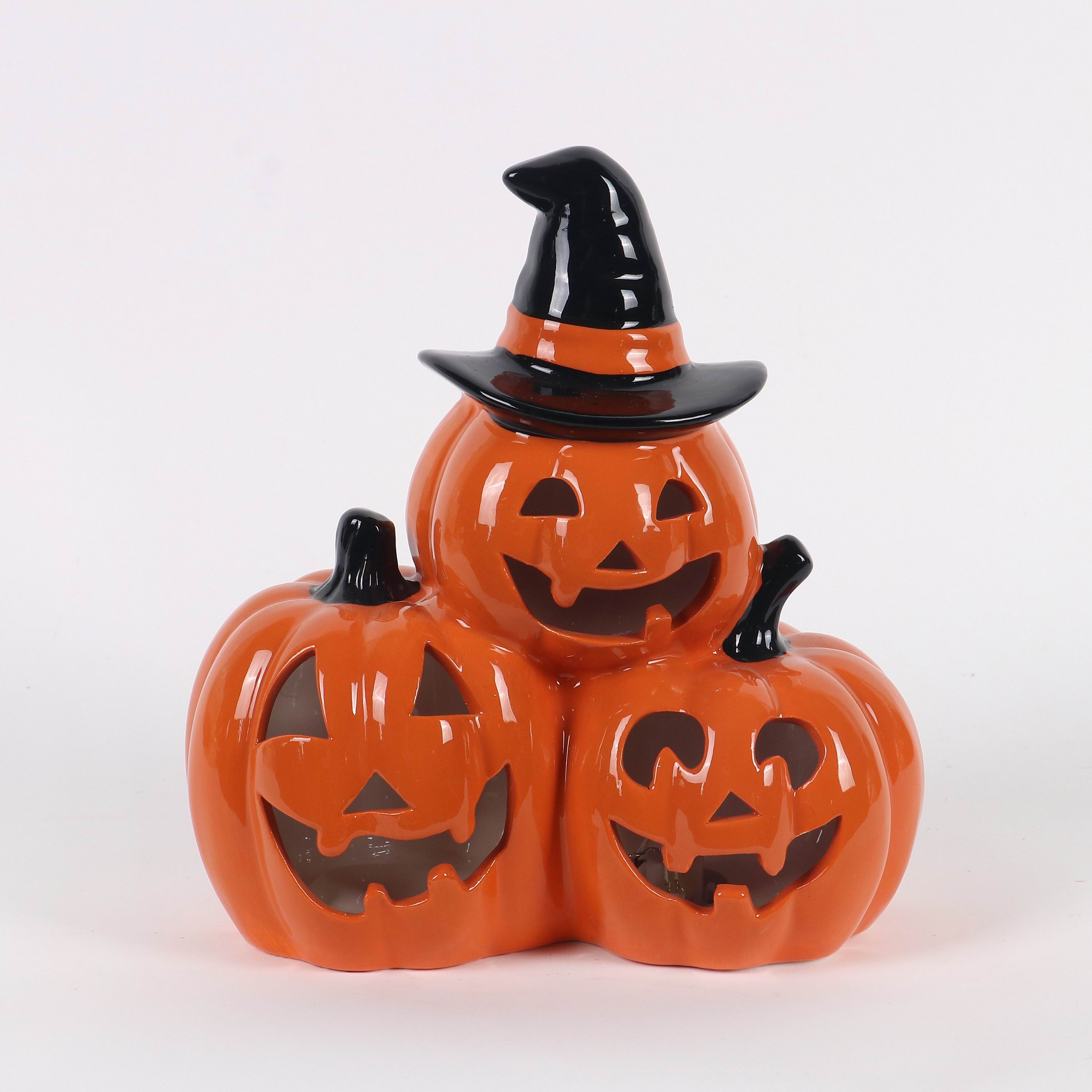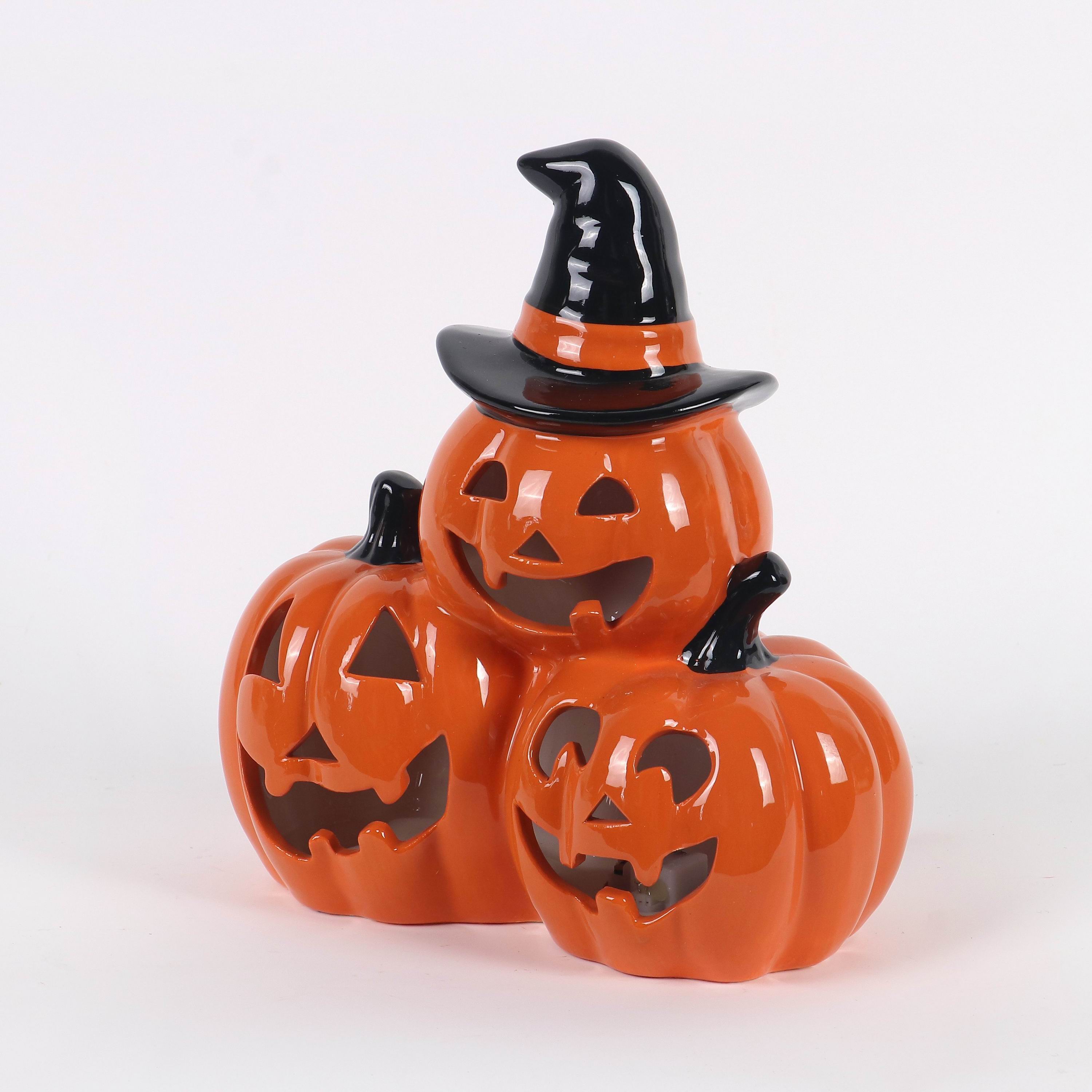 HALLOWEEN LIGHT UP CERAMIC STACKED PUMPINS