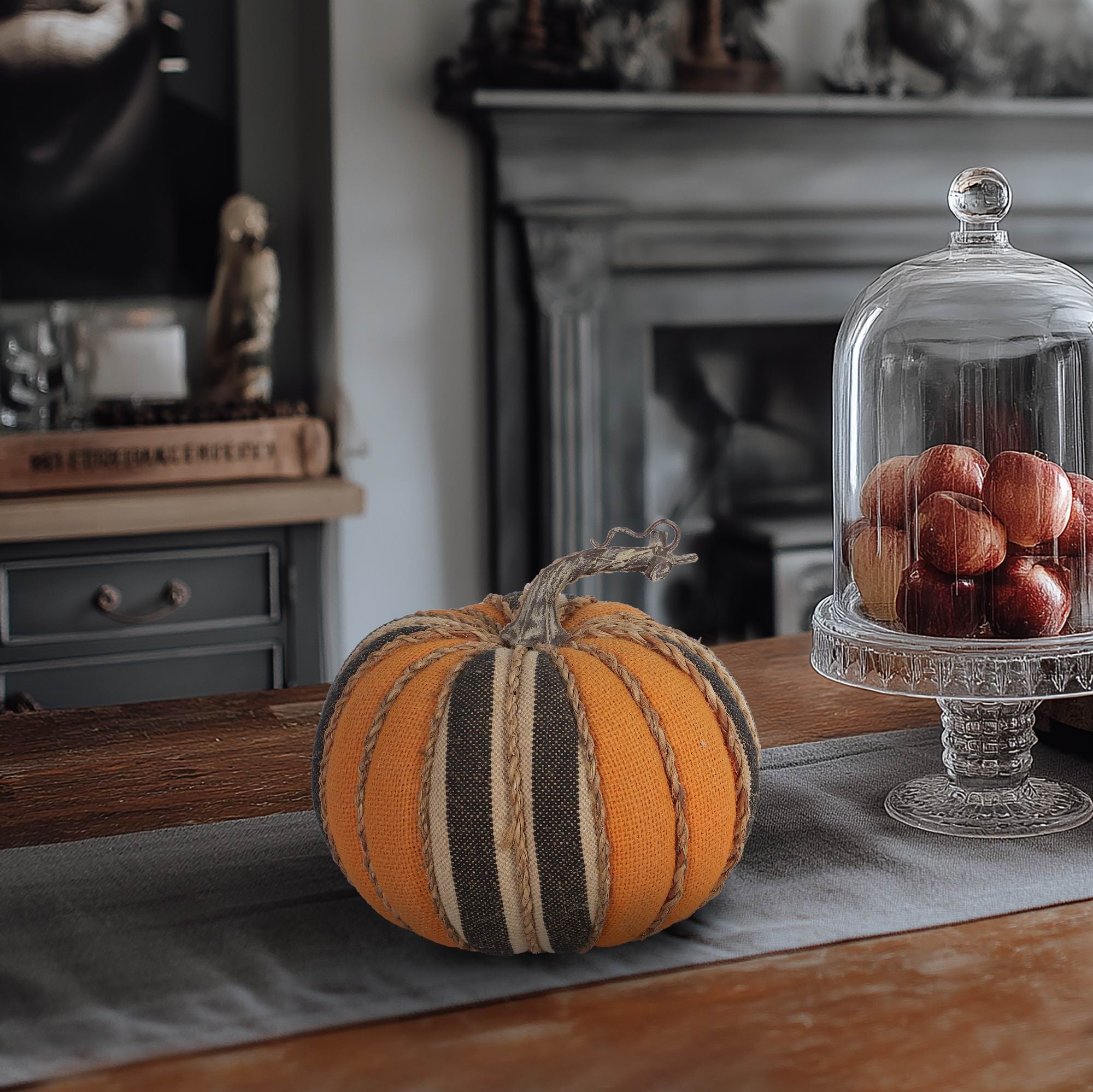 6" Halloween Fabric Pumpkin Black/ Orange Stripes