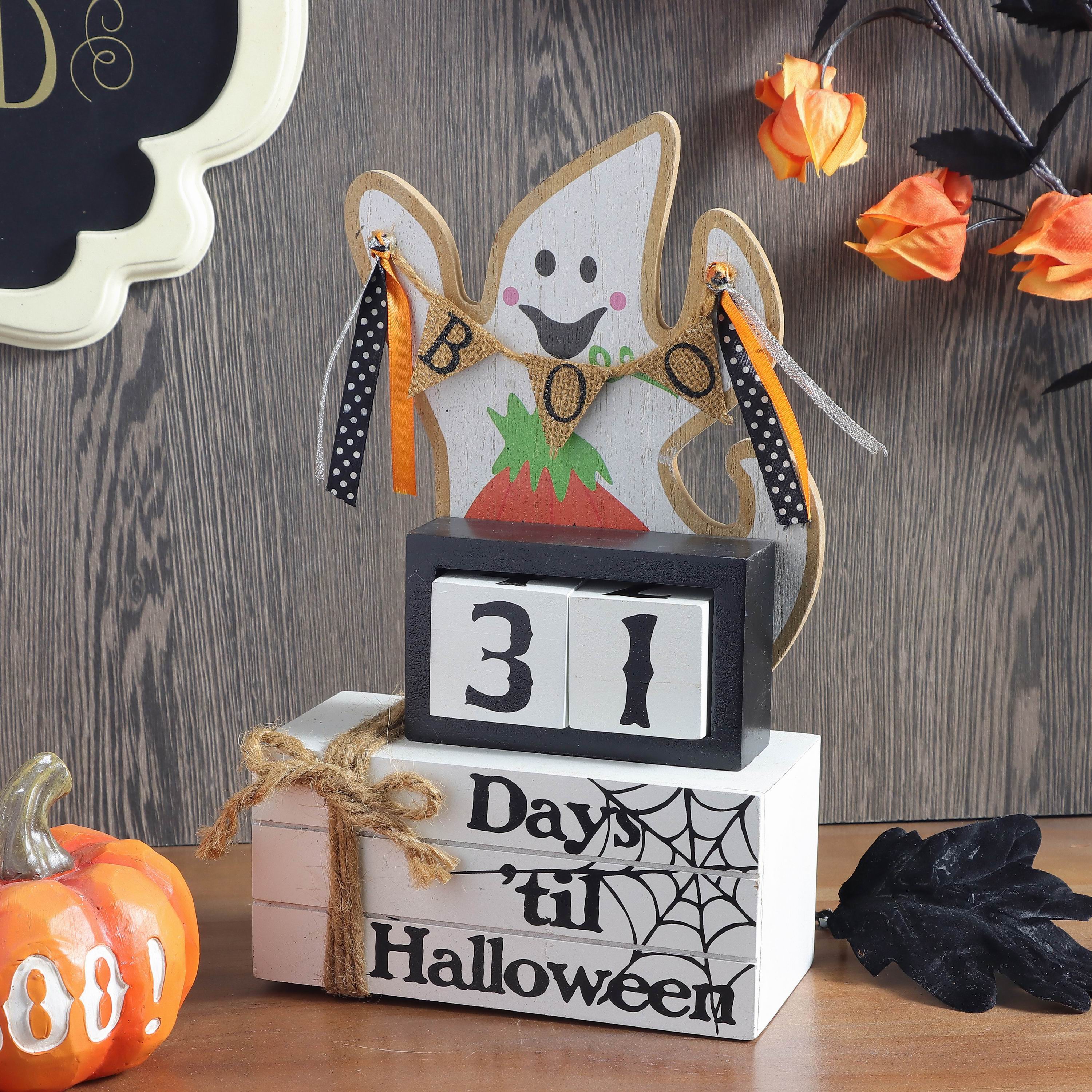 This 10-inch Halloween ghost countdown calendar combines charming design with practical functionality. Featuring a whimsically detailed ghost motif, it allows you to effortlessly track the days leading up to Halloween. Its compact size suits tabletops or shelves, providing a festive and organized way to enhance your seasonal decor with expert craftsmanship and lasting appeal.