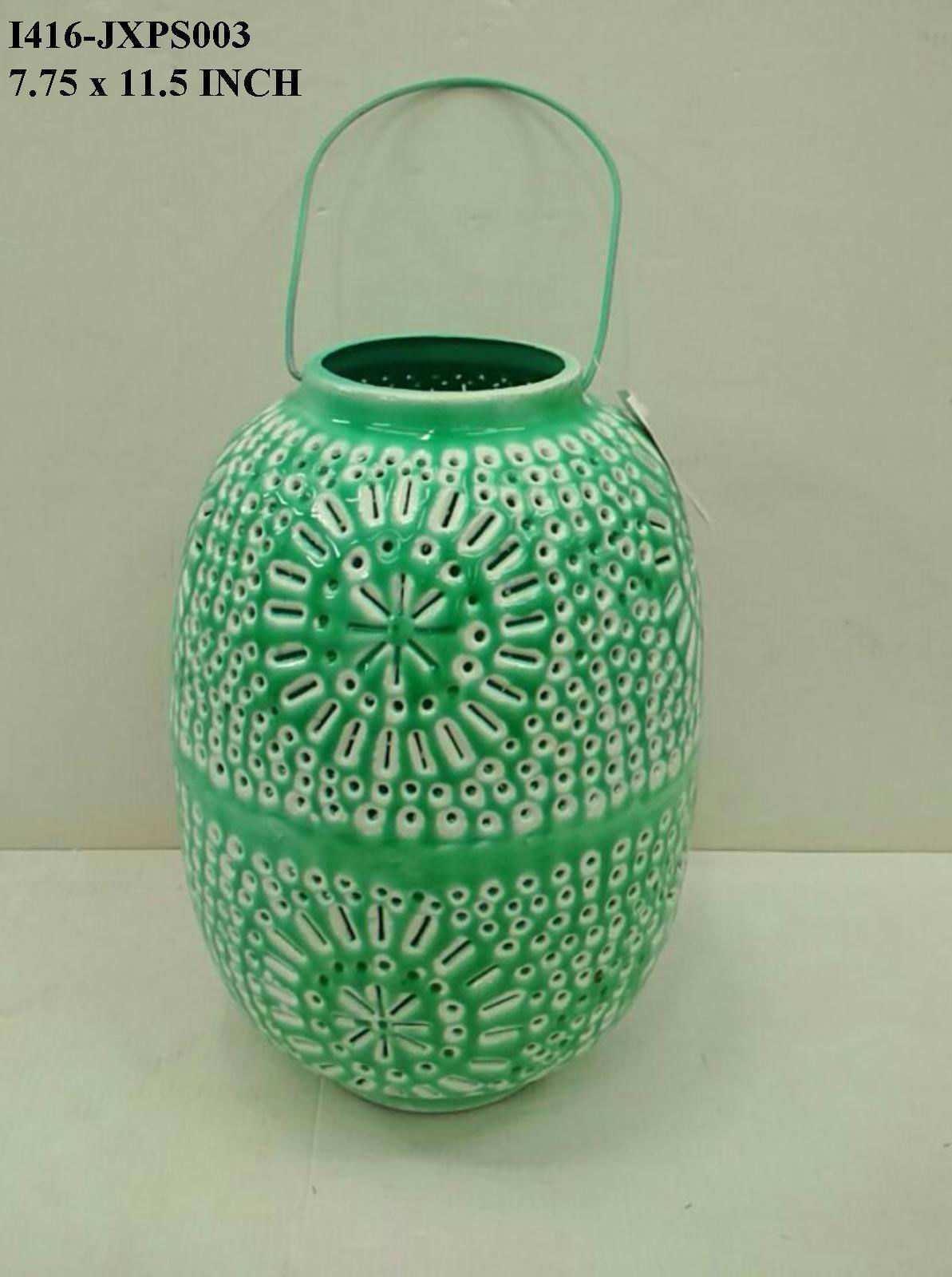 7.75x11.5x0.0 This ceramic green lantern is expertly crafted to combine durability with aesthetic appeal. Its sturdy ceramic construction ensures longevity, while the rich green finish adds a vibrant, natural touch to any space. Designed to enhance ambiance safely, it serves as both a functional light source and a sophisticated decorative element.
