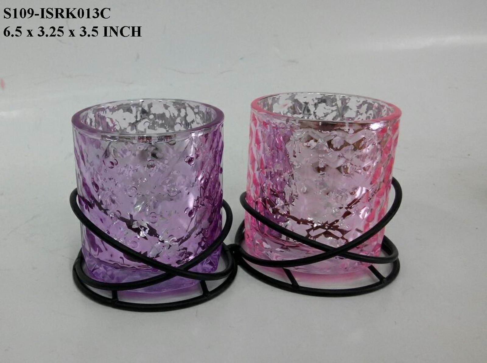 4.75x3.0x0.0 This glass and wired candle holder expertly pairs heat-resistant glass with a sturdy wire framework to ensure stability and safety. Its transparent glass allows for clear candlelight illumination, while the wire structure adds a modern, industrial touch. Designed for durability and style, it enhances any interior with sophisticated functionality.