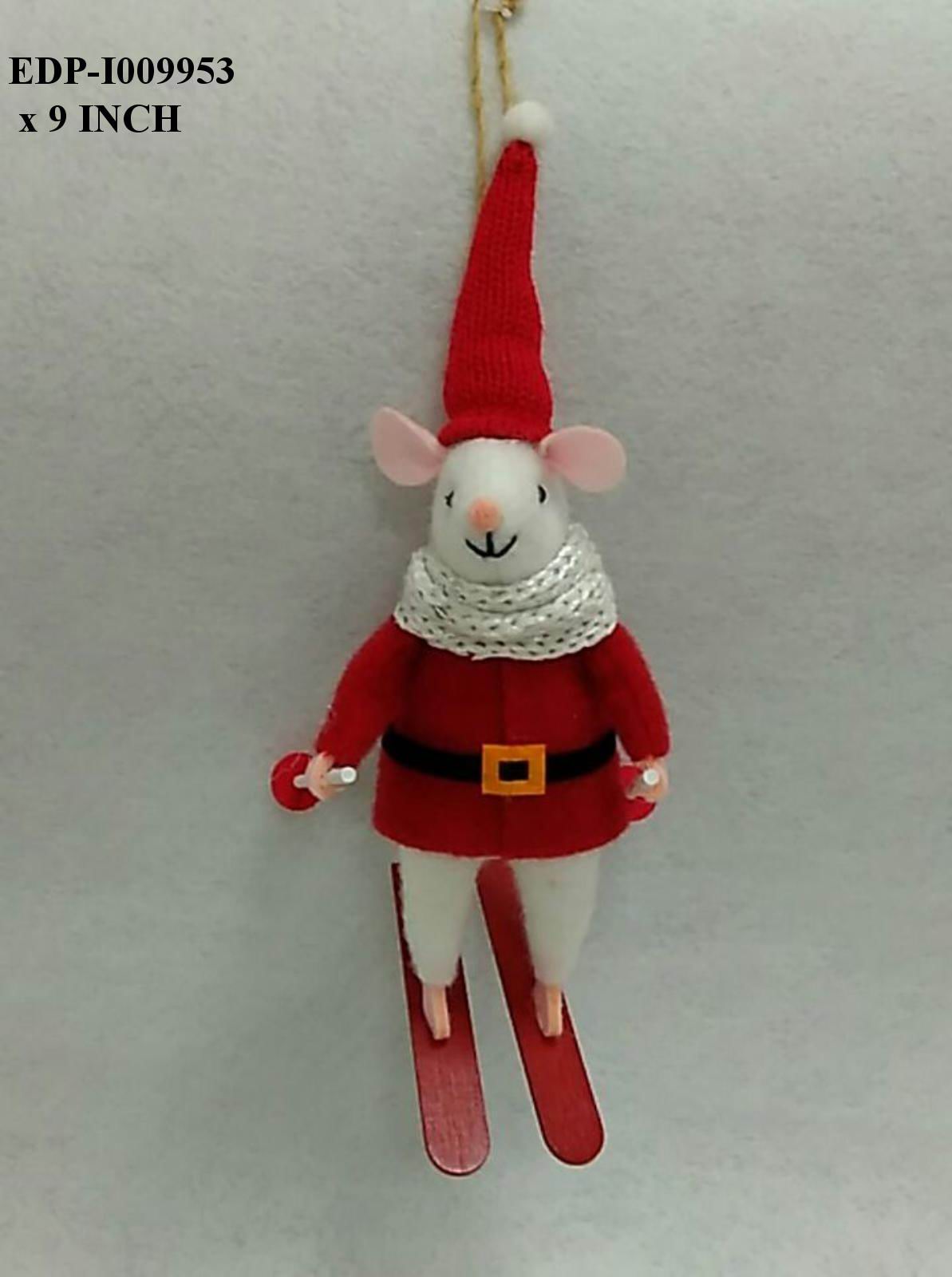 9"H This 9-inch fabric mouse skiing ornament features expert craftsmanship with detailed textile design that captures a playful winter scene. Its refined construction and charming motif make it an elegant addition to holiday decor, bringing sophisticated seasonal character to festive displays.