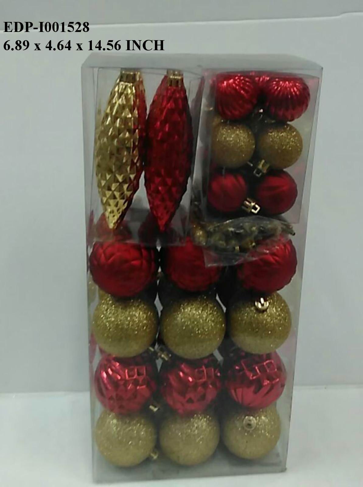 9.37x19.68x0.0 These red and gold shatterproof assorted shape ornaments combine vibrant traditional colors with durable, break-resistant construction. Packaged in a protective box for convenient storage, they offer a secure and elegant way to enhance holiday decor with varied shapes that add visual interest while ensuring lasting beauty and safety.