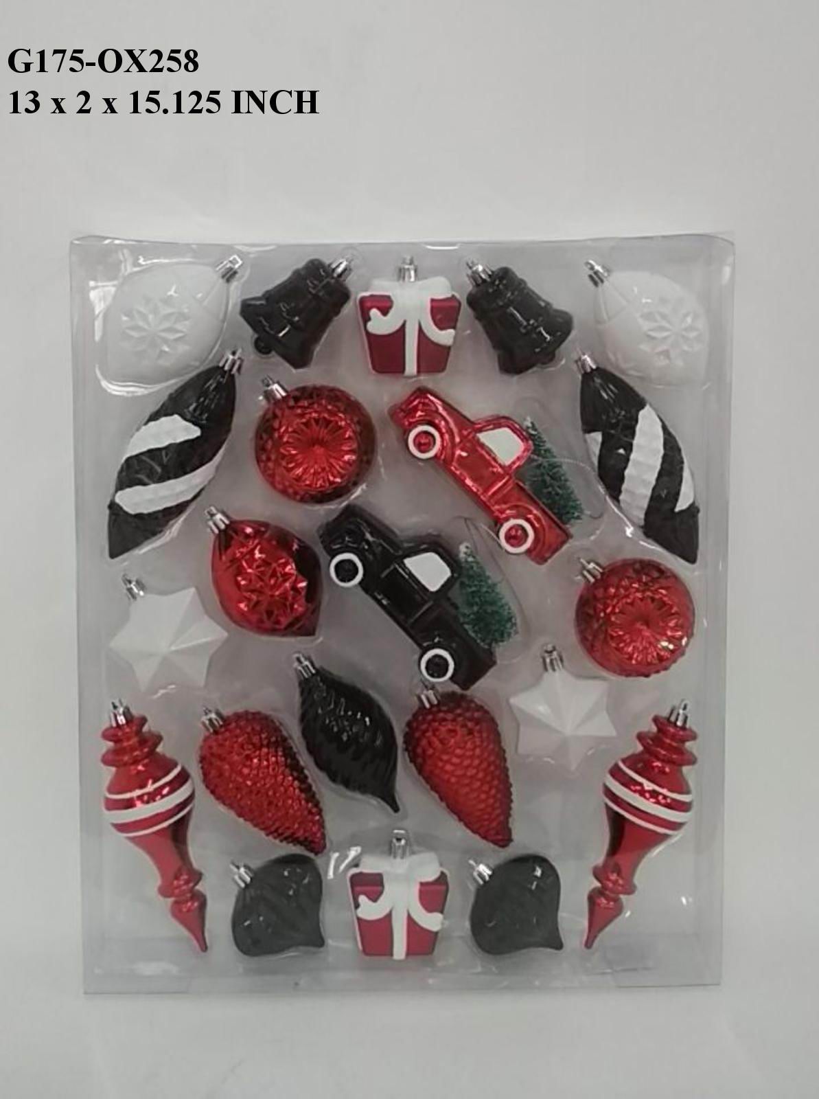 Red/Black/White Multi Shape Shatterproof Boxed Orn
