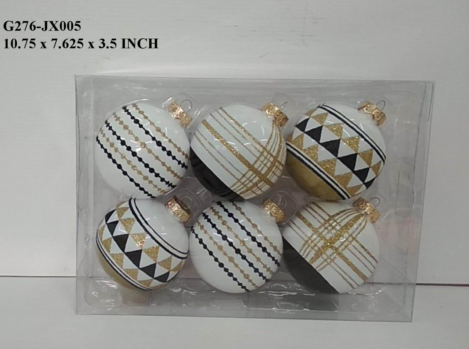 10.75x7.625x3.5 This boxed set of white, black, and gold multi-design ball ornaments exemplifies expert craftsmanship with a sophisticated blend of colors and patterns. Made from high-quality materials, each ornament features intricate detailing and a polished finish, providing elegant accents that enhance holiday decor with timeless style and durability.