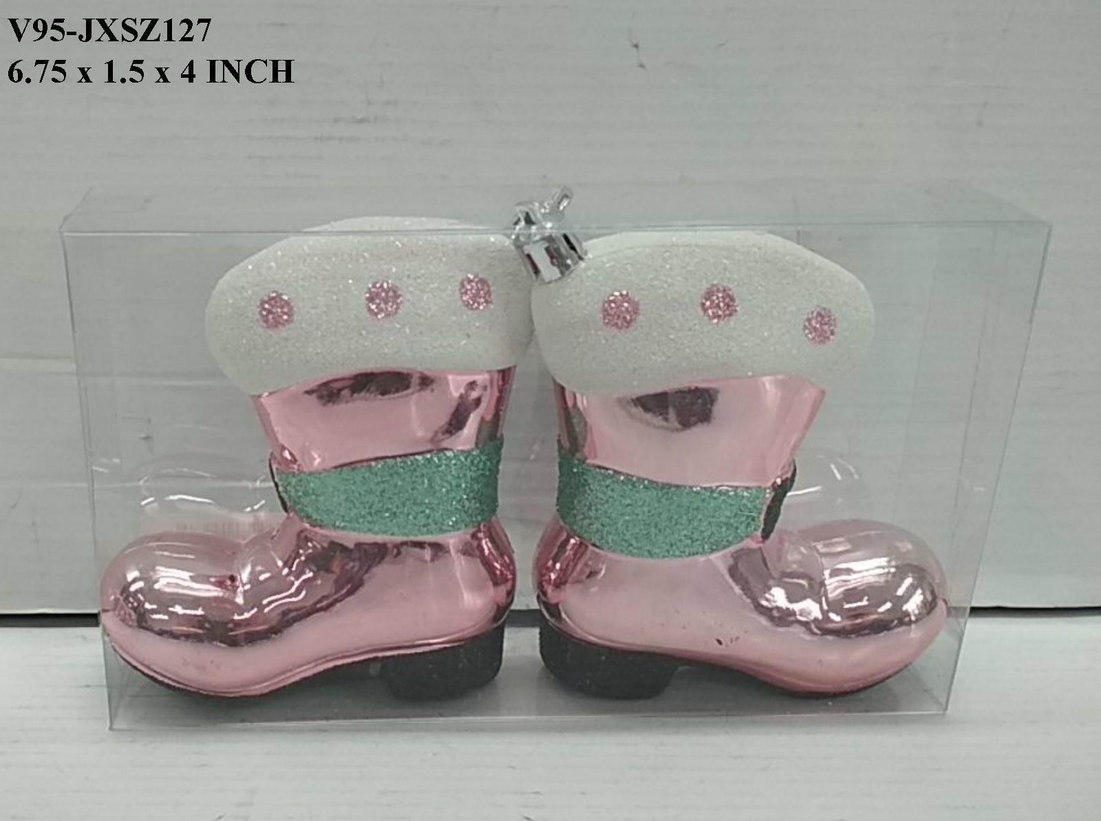 6.75x1.5x4 Add a unique festive touch with these shatterproof boot-shaped ornaments, neatly boxed for easy storage and gifting. Crafted to withstand accidental drops, these durable decorations provide both style and safety. Their charming design adds character to any holiday display, making them a sophisticated choice for collectors and decorators seeking reliable, long-lasting seasonal accents.