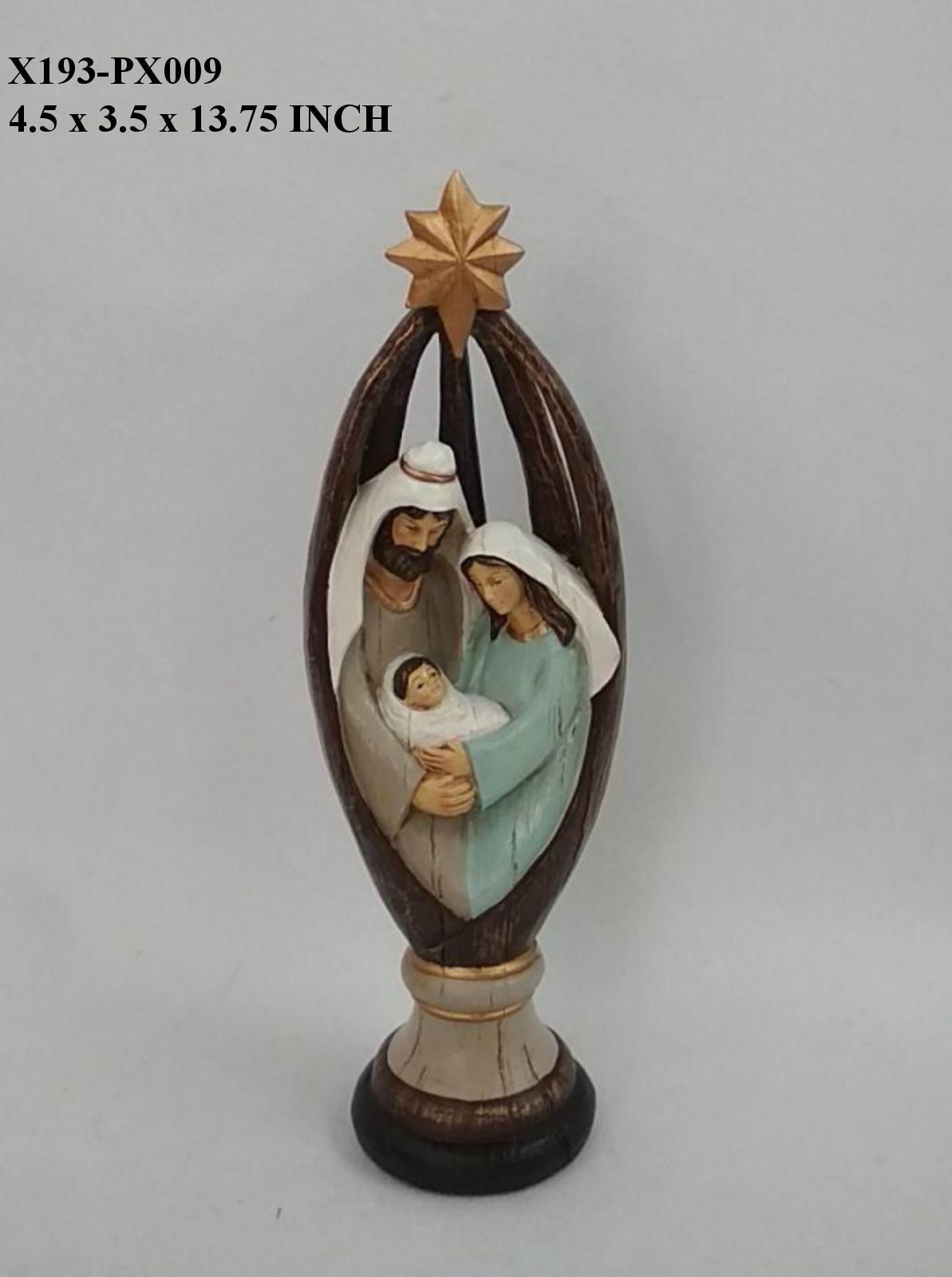 4.5x3.5x13.75 This tabletop Holy Family display exemplifies expert craftsmanship with finely detailed figures representing a timeless holiday scene. Crafted for durability and stability, it serves as an elegant and meaningful centerpiece that enhances seasonal decor with refined spiritual significance.