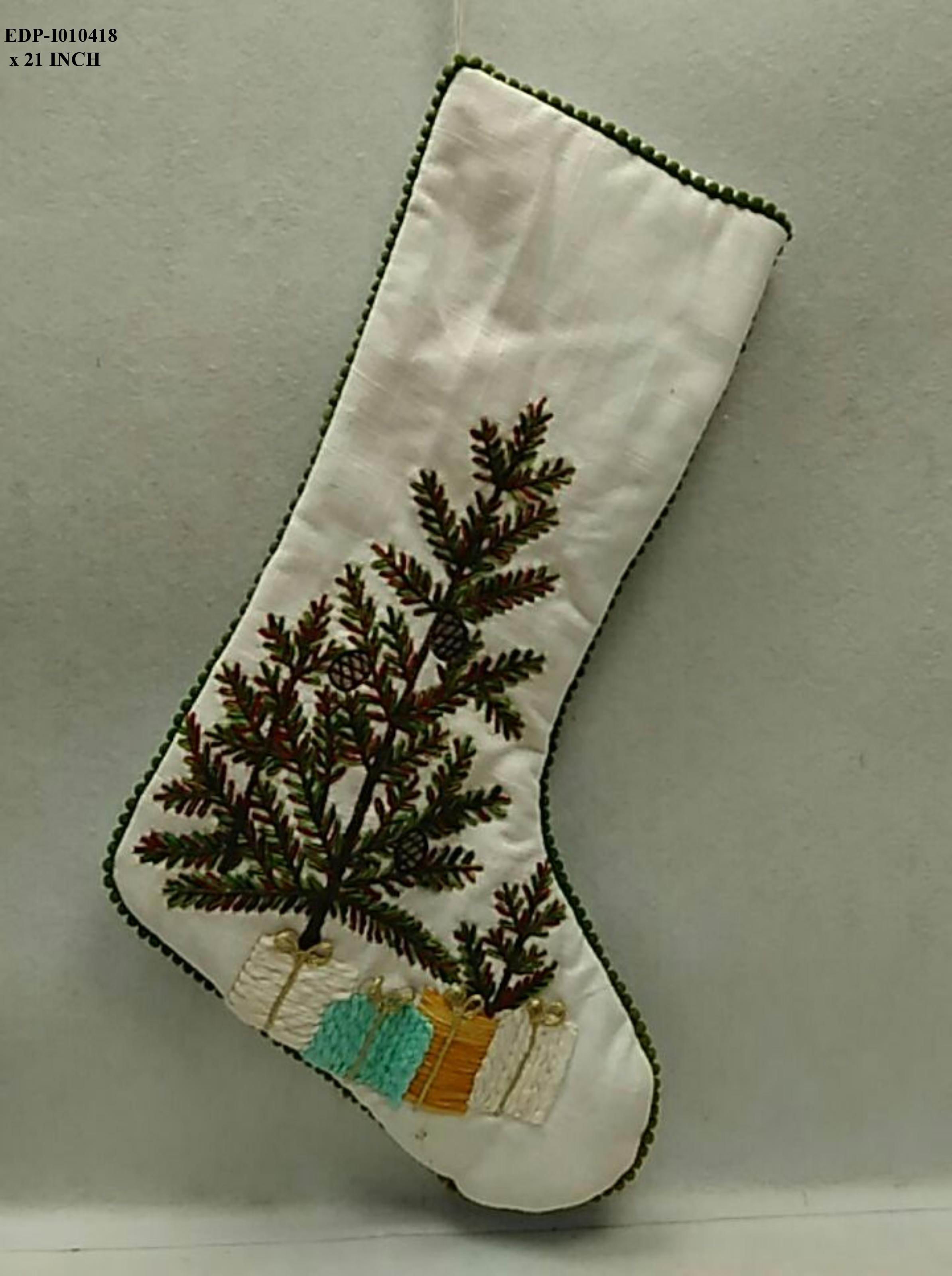 This 21-inch fabric stocking features an integrated Christmas tree design that celebrates iconic holiday symbolism. The thematic motif adds narrative depth and visual interest while the generous size provides substantial capacity for gifts and seasonal fillings. Crafted from quality materials, it delivers reliable durability and distinguished styling throughout the holiday season. Perfect for those seeking stockings that honor traditional festive imagery with refined execution, this piece serves as both a functional accent and a decorative statement that enhances curated holiday displays with authentic charm and enduring appeal.