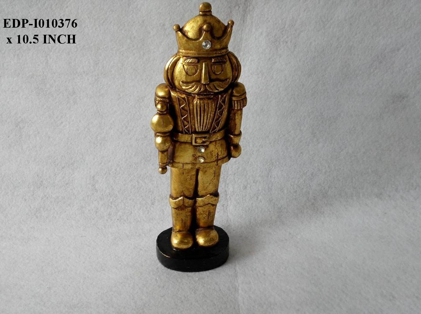 10.5" This antique gold nutcracker features exquisite detailing and a rich metallic finish, expertly crafted to evoke classic holiday tradition. Its sturdy construction ensures durability, while the elegant design adds a sophisticated, timeless accent to seasonal decor collections.