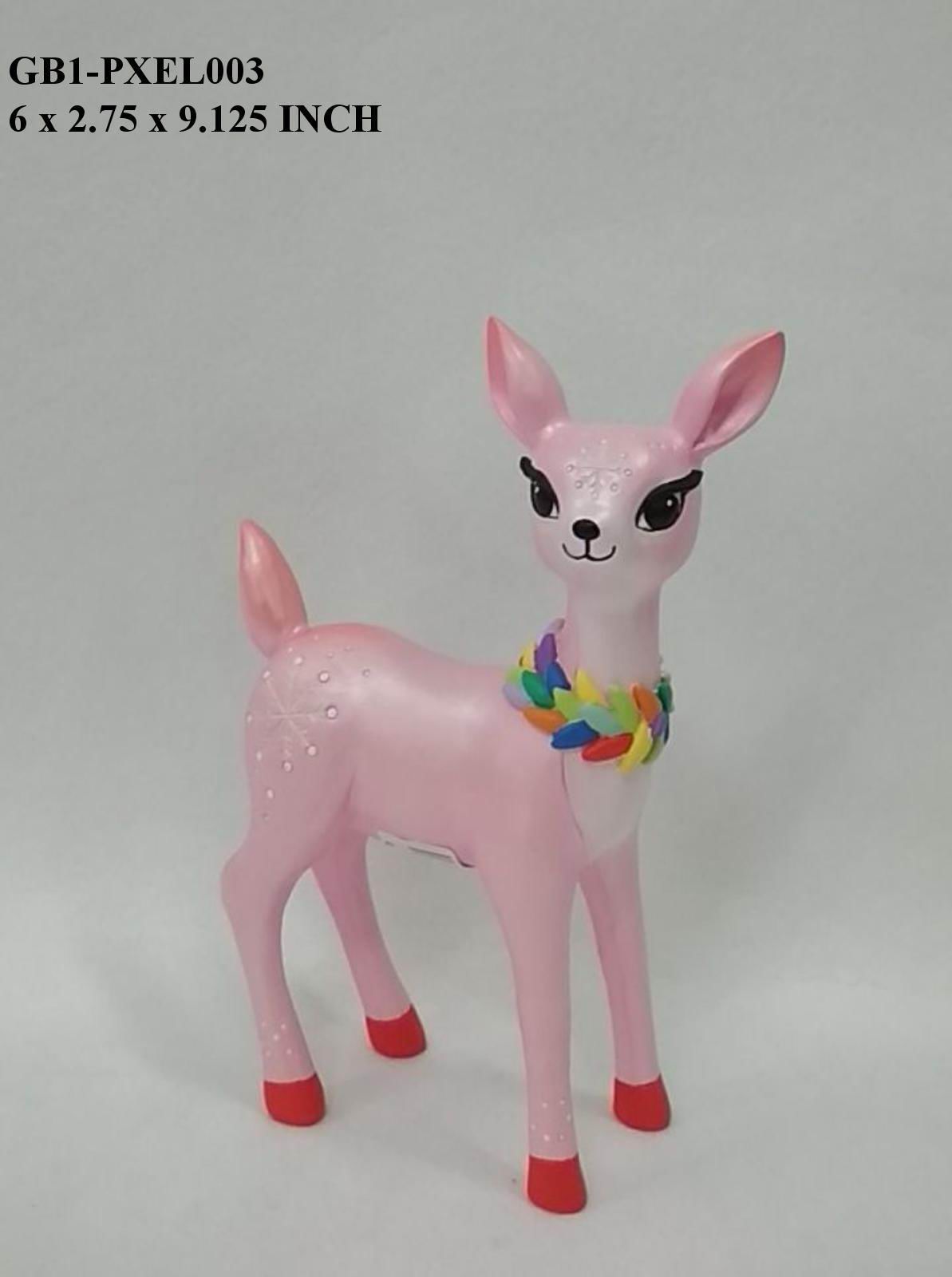 Introduce whimsical elegance with this polyresin pink deer, a charming decorative accent for contemporary and eclectic interiors. Standing 9.1" tall with a 6.0" width and 2.8" depth, this graceful figure brings soft color and artistic appeal to shelves, mantels, or display surfaces. The polyresin construction ensures durability while maintaining fine sculptural detail in the deer's refined form. The blush pink finish adds a modern twist to traditional wildlife imagery, creating visual interest that complements both neutral and colorful decor schemes. Perfect for collectors seeking unique statement pieces or those looking to soften their space with nature-inspired artistry, this deer delivers personality and sophistication to any room.