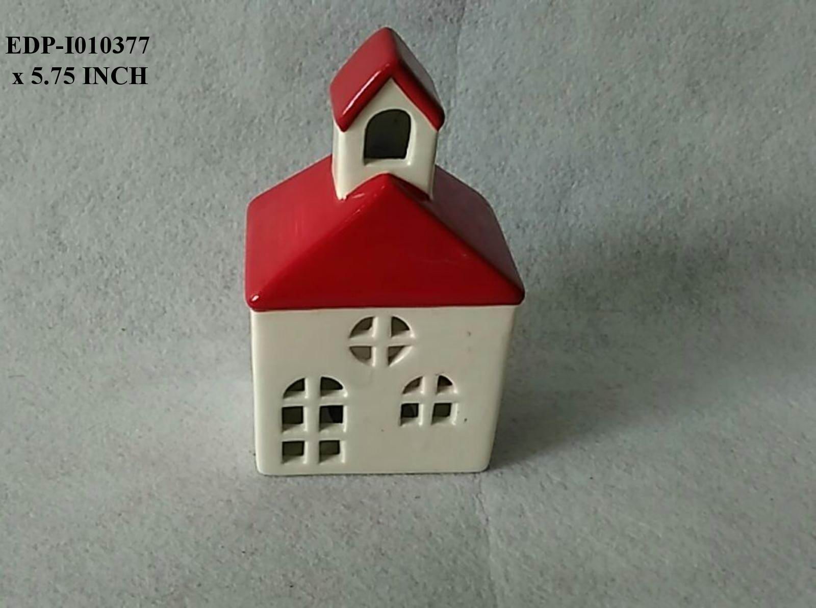 5.75" This ceramic lighted house is expertly crafted with detailed architectural features and a smooth finish. Illuminated from within, it casts a soft, inviting glow that enhances the ambiance of any room. Durable and elegant, it serves as a refined decorative piece ideal for seasonal or year-round display.