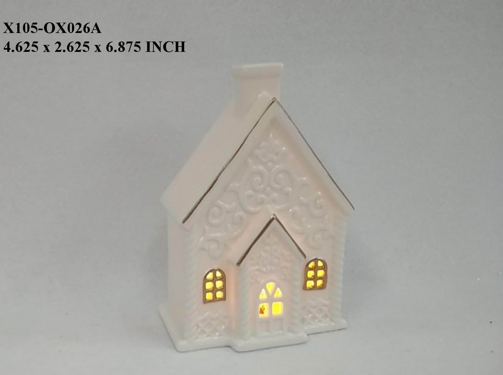 4.625x2.625x6.875 This Ceramic Lighted Table Top House combines elegant ceramic craftsmanship with soft, ambient lighting to create a captivating decorative piece. Designed with precision, it offers both durability and aesthetic appeal, bringing a warm, inviting glow to any room. Ideal for enhancing your tabletop displays or seasonal decor with a refined, expert touch.