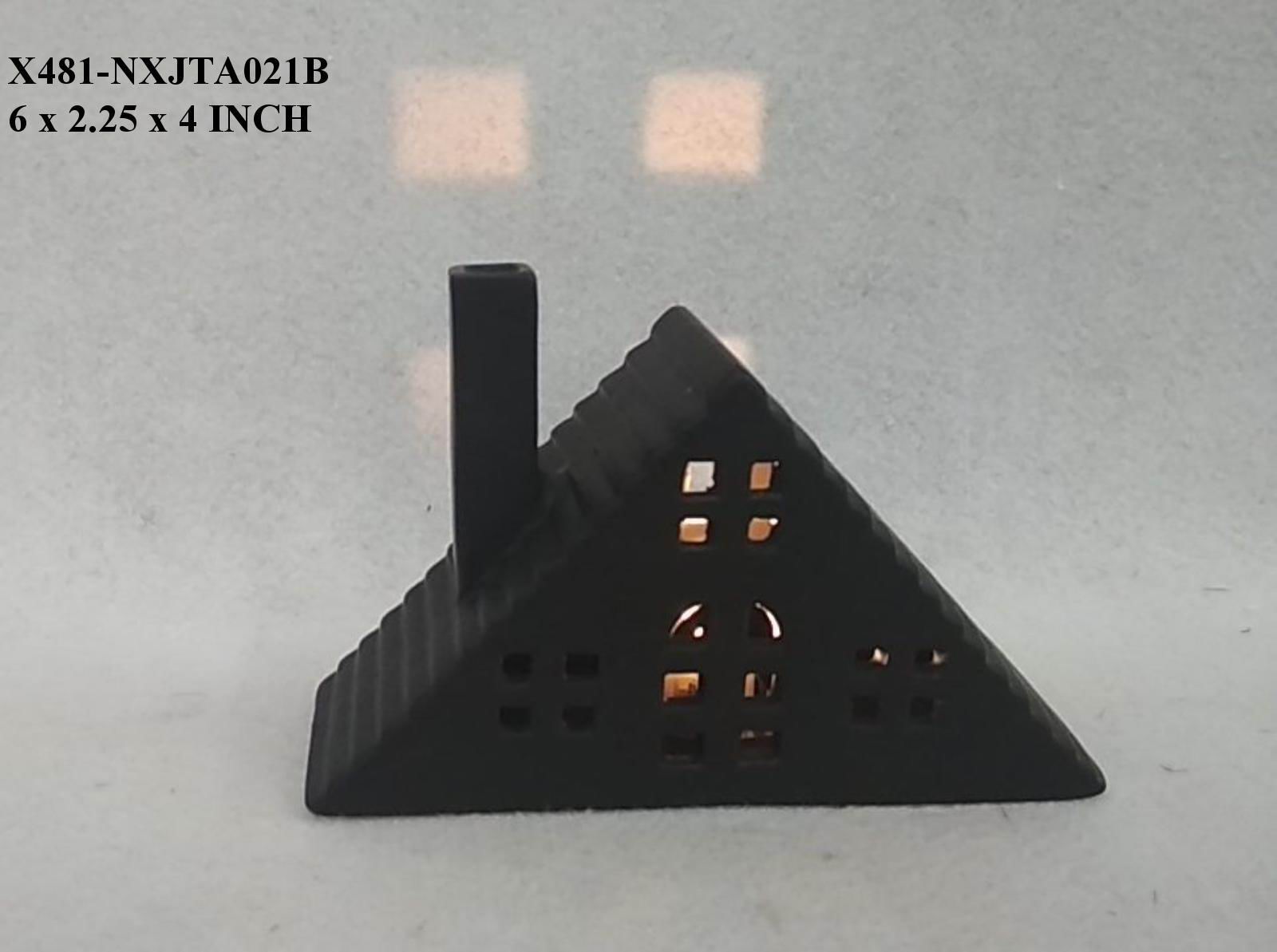 Create cozy ambiance with this charming ceramic lighted house featuring a distinctive black roof and integrated illumination. Measuring 6.0" wide, 2.25" deep, and 4.0" tall, its compact proportions fit perfectly on shelves, windowsills, or tabletops. The black roof provides striking contrast while the built-in lighting casts a warm, inviting glow that evokes nostalgic comfort and seasonal warmth. Handcrafted from quality ceramic, this piece captures the essence of home and hearth with contemporary appeal. Perfect for holiday displays, year-round decor, or creating intimate lighting moments, whether showcased individually or grouped with complementary village pieces, this house brings character and charm to any arrangement. Ideal for those seeking distinctive accents that celebrate architectural warmth with functional artistry and timeless appeal.