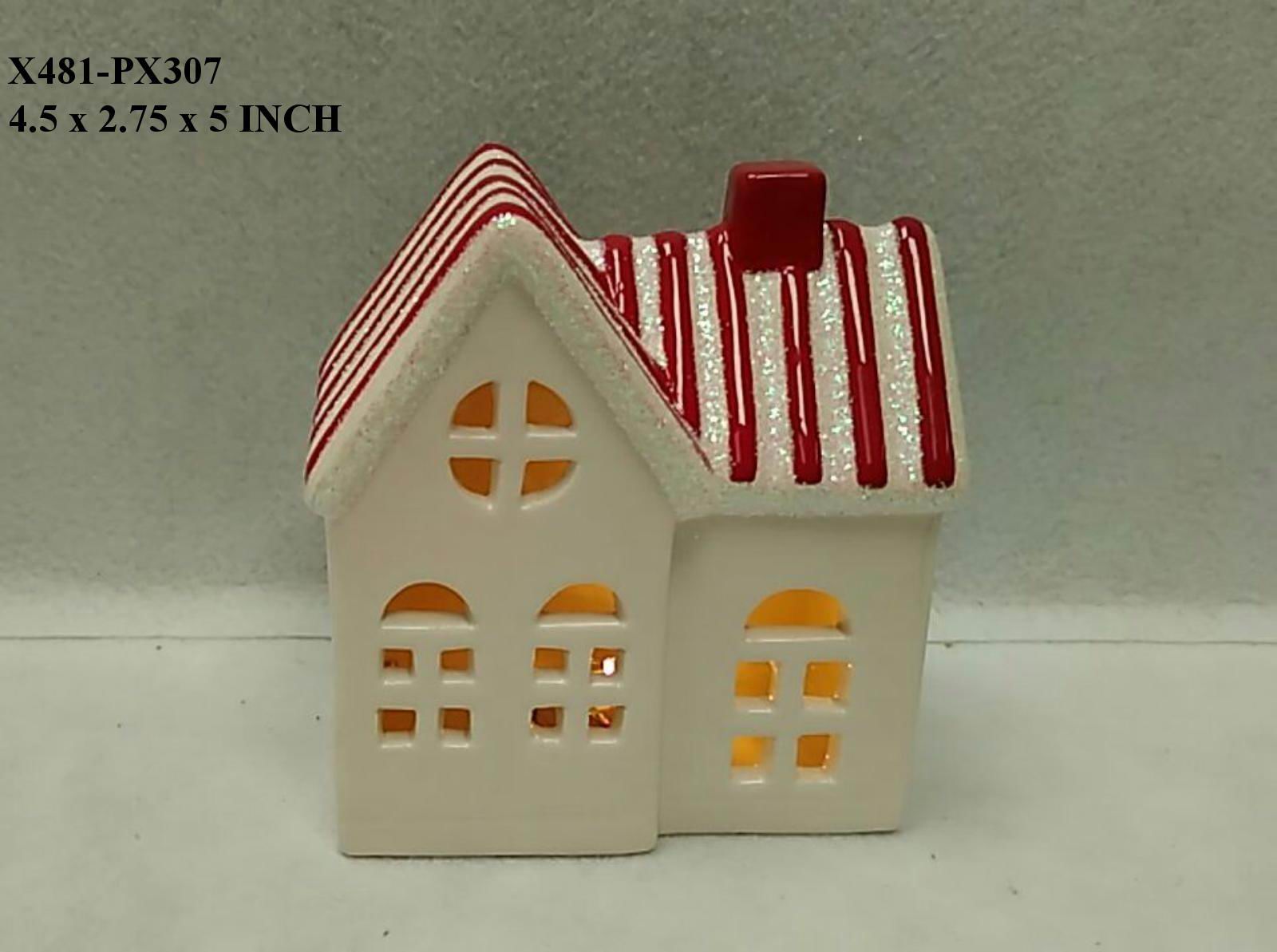 Red/WhitenCeramic Table Top Lighted House
