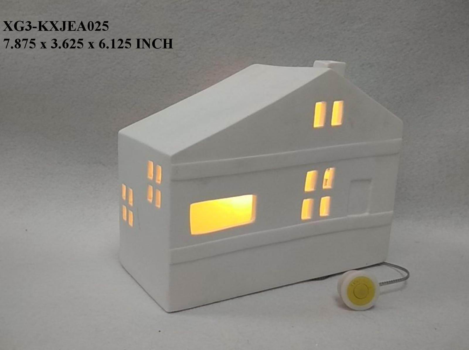 7.875x3.625x6.125 This ceramic lighted house presents an exquisite blend of architectural artistry and ambient illumination technology. The intricately detailed ceramic facade features dimensional elements¡ªpitched rooflines, window frames, and decorative accents¡ªthat cast enchanting shadows when the integrated lighting activates. Engineered from durable ceramic material, the structure resists thermal stress and maintains pristine condition through extended use.