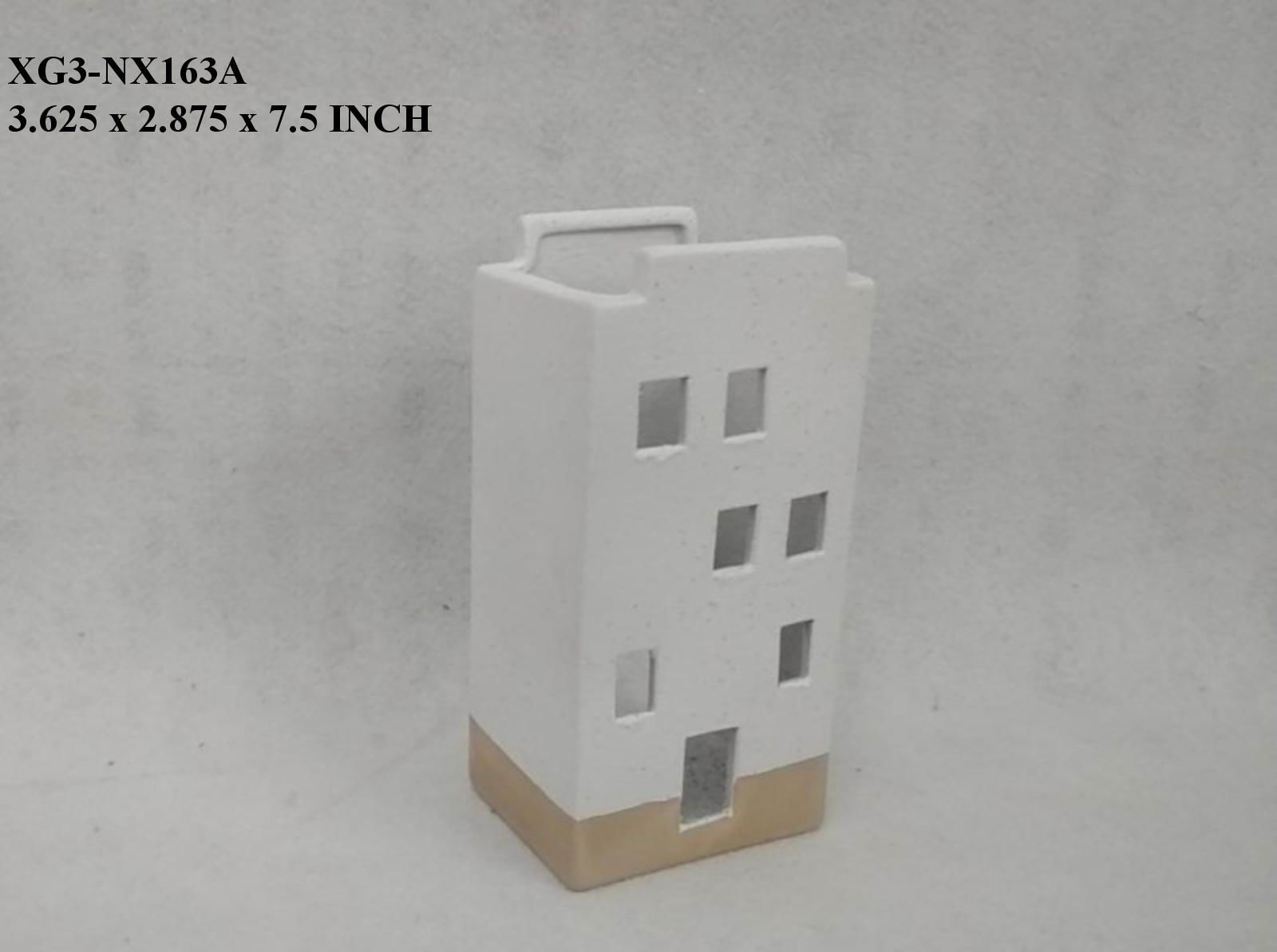 3.625x2.875x7.5 This ceramic lighted house is crafted with precision from high-quality ceramic, combining durability with refined design. Its smooth finish and integrated soft lighting provide a warm, inviting glow, making it an ideal decorative accent for tabletops, shelves, or mantels. Designed to enhance various interior styles, it offers both functional illumination and sophisticated aesthetic appeal.