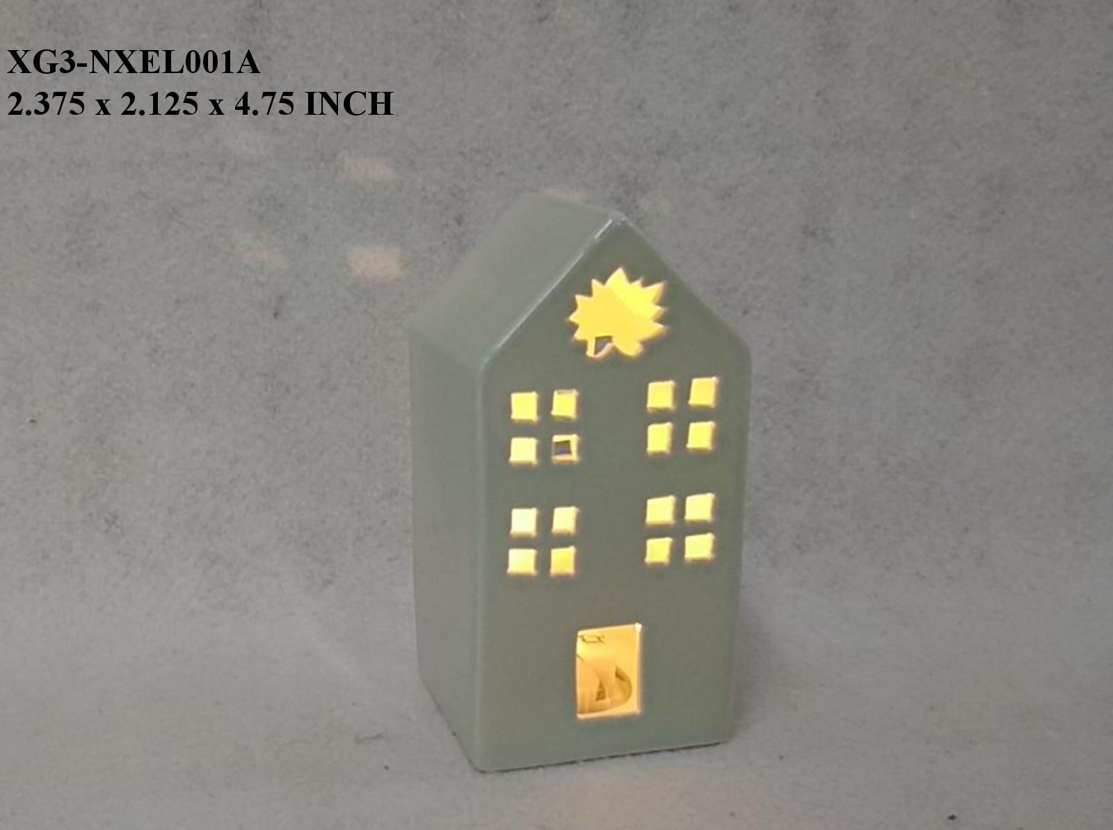 2.375x2.125x4.75 This ceramic lighted house is crafted with precision from high-quality ceramic, combining durability with refined design. Its smooth finish and integrated soft lighting provide a warm, inviting glow, making it an ideal decorative accent for tabletops, shelves, or mantels. Designed to enhance various interior styles, it offers both functional illumination and sophisticated aesthetic appeal.