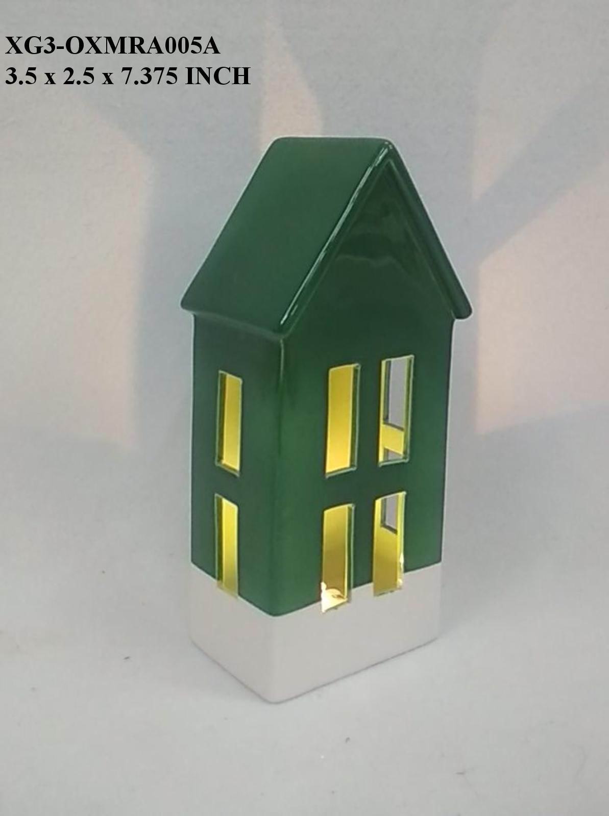 3.5x2.5x7.375 This ceramic lighted house is crafted with precision from high-quality ceramic, combining durability with refined design. Its smooth finish and integrated soft lighting provide a warm, inviting glow, making it an ideal decorative accent for tabletops, shelves, or mantels. Designed to enhance various interior styles, it offers both functional illumination and sophisticated aesthetic appeal.