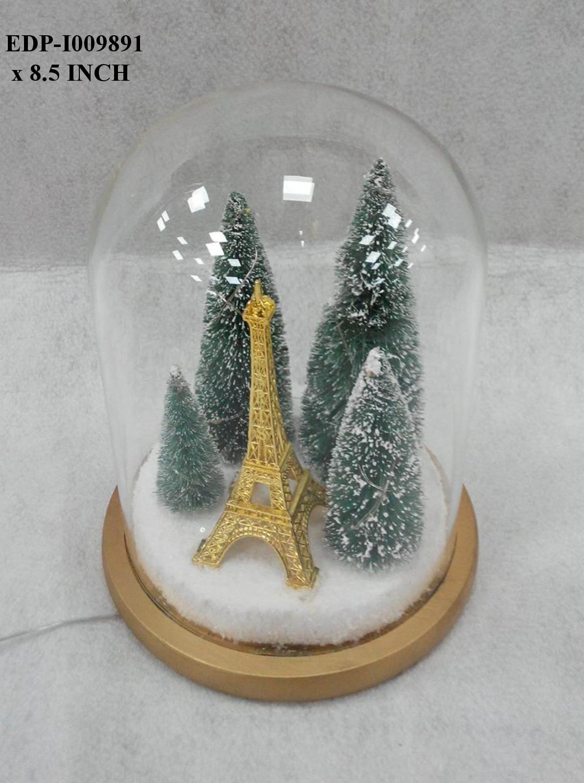 8.5"H This 8.5-inch tabletop glass dome features an intricately designed tree decor, encased within clear glass to protect and highlight its delicate details. Its elegant silhouette and refined craftsmanship make it a sophisticated accent piece that enhances any interior setting with a subtle natural theme.