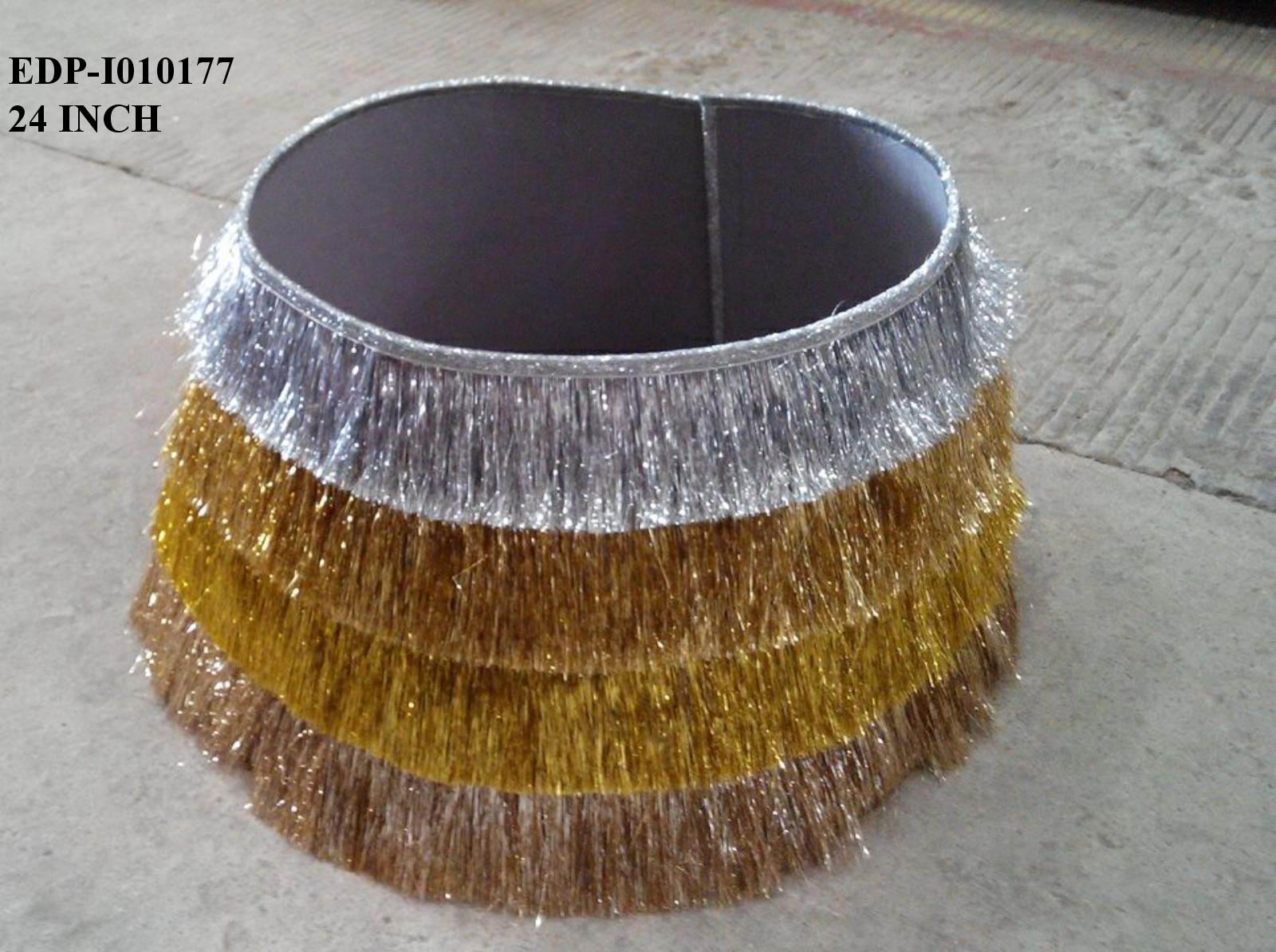 24" Elevate your holiday display with this sophisticated Christmas tree collar in silver and gold. Expertly designed to conceal the tree stand, it offers a sleek and refined look that complements modern and classic decor styles. Crafted for easy installation and durability, this collar adds a touch of festive elegance while maintaining a clean, polished appearance throughout the season.