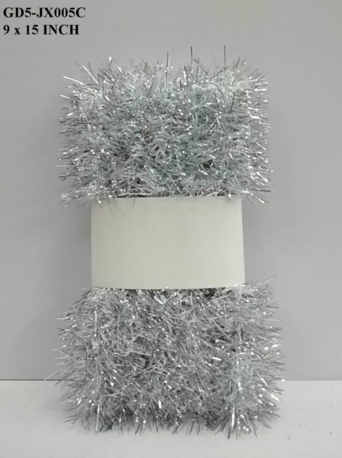 9.0x15.0x0.0 The Tinsel Silver Garland offers a sleek, reflective silver finish that adds refined shimmer to holiday decorations. Crafted with high-quality, durable materials, it preserves its vibrant metallic shine and shape through repeated use. Its flexible form allows seamless placement on trees, mantels, or railings, providing an elegant and contemporary accent to festive displays.