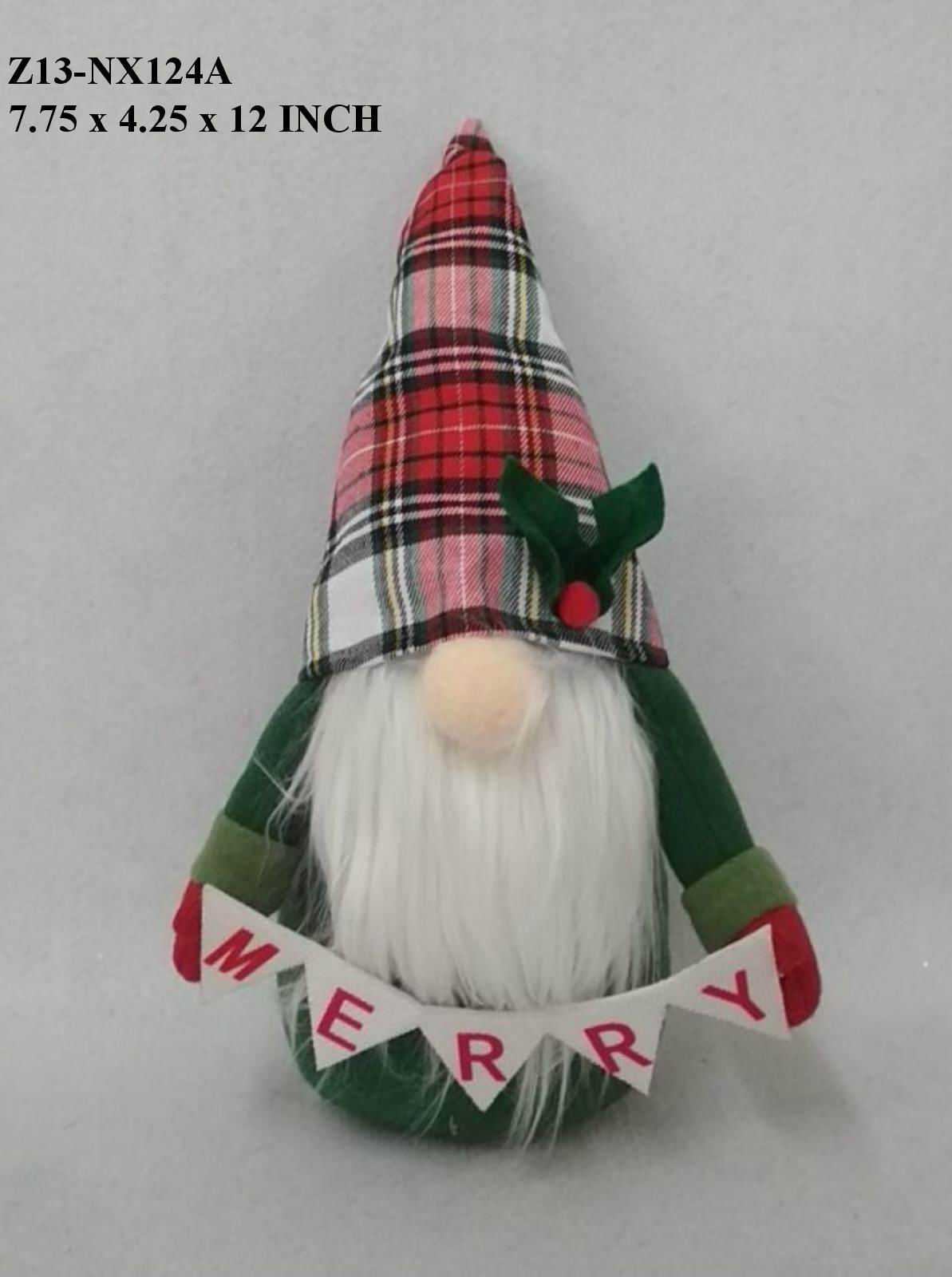 7.75x4.25x12.0 Introduce whimsical charm to your holiday display with this fabric Christmas gnome featuring festive greetings. Meticulously crafted from quality fabric, this character piece combines traditional gnome aesthetics with seasonal messaging that captures the spirit of the holidays. Its thoughtful design makes it an ideal accent for mantels, shelves, or tabletop arrangements. The fabric construction ensures durability while maintaining a soft, approachable appeal that complements various decor styles.