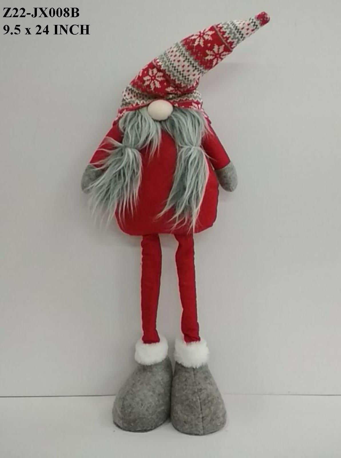 9.5x24.0x0.0 Bring festive charm to your home with this delightful fabric Christmas standing gnome. Crafted with attention to detail, this whimsical decoration features soft, quality materials and a sturdy base that keeps it perfectly upright on shelves, mantels, or tabletops. The gnome's traditional holiday aesthetic¡ªcomplete with a pointed hat and cozy fabric construction¡ªmakes it an ideal accent for seasonal displays. Whether you're decorating a living room, ent