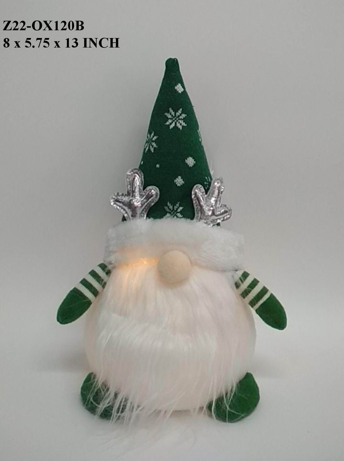 8x5.75x13 Bring festive charm to your home with this charming fabric standing green Christmas gnome. Crafted with attention to detail, this holiday decoration features a classic gnome silhouette dressed in rich green tones, perfect for adding warmth and character to any room. Whether displayed on shelves, mantels, or entryways, this fabric gnome captures the whimsical spirit of the season.
