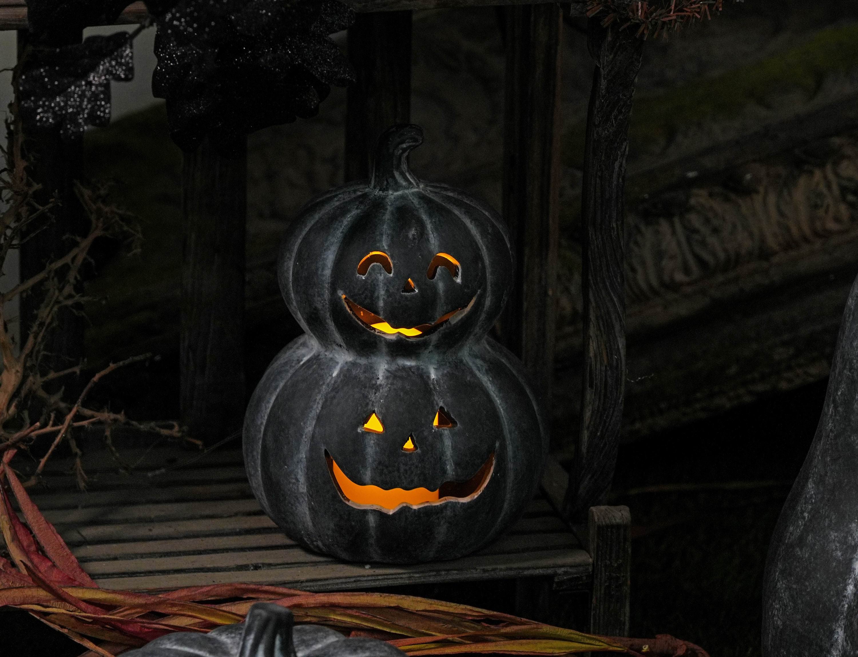 8.75"H. Halloween Stacked Jack-O-Lantern Pumpkins