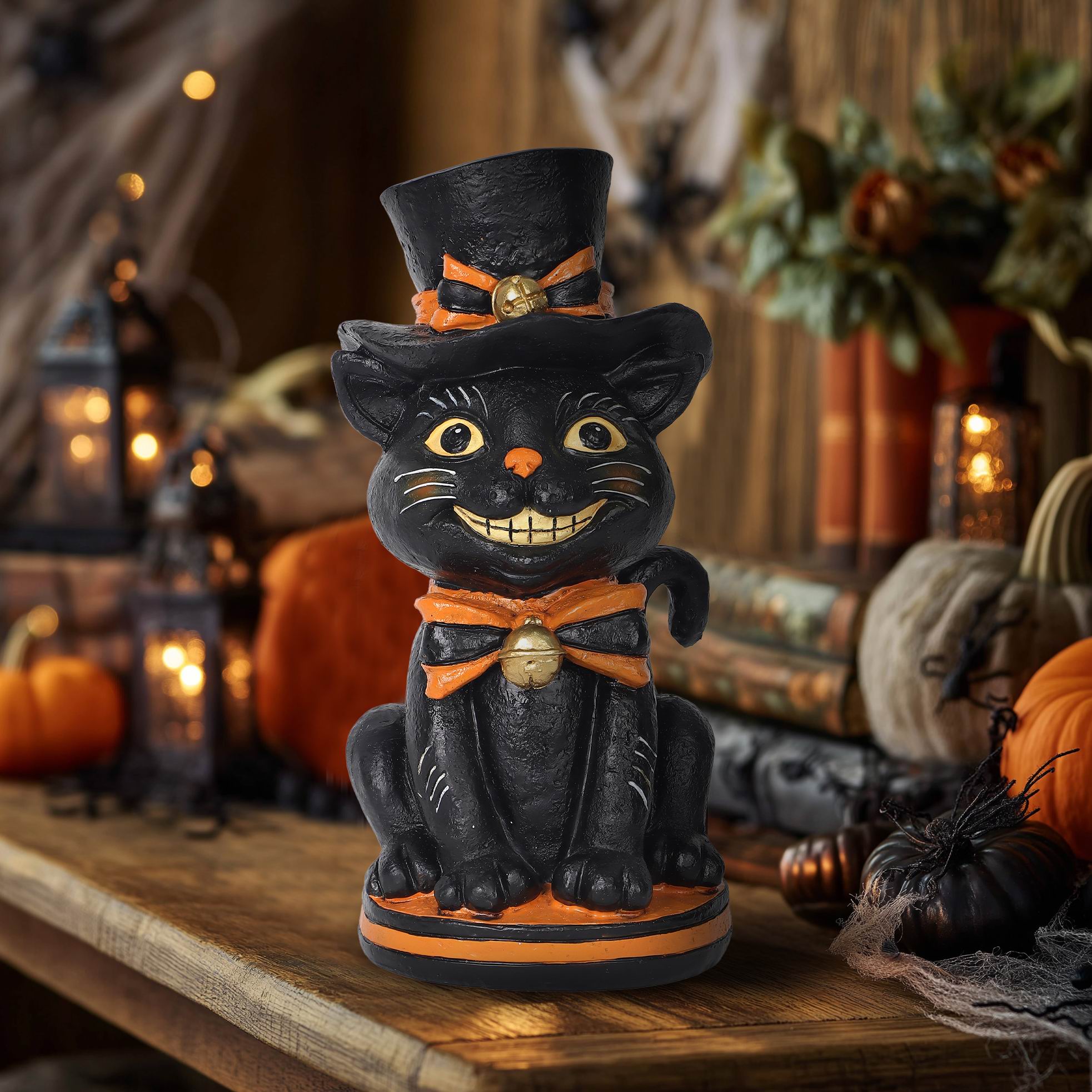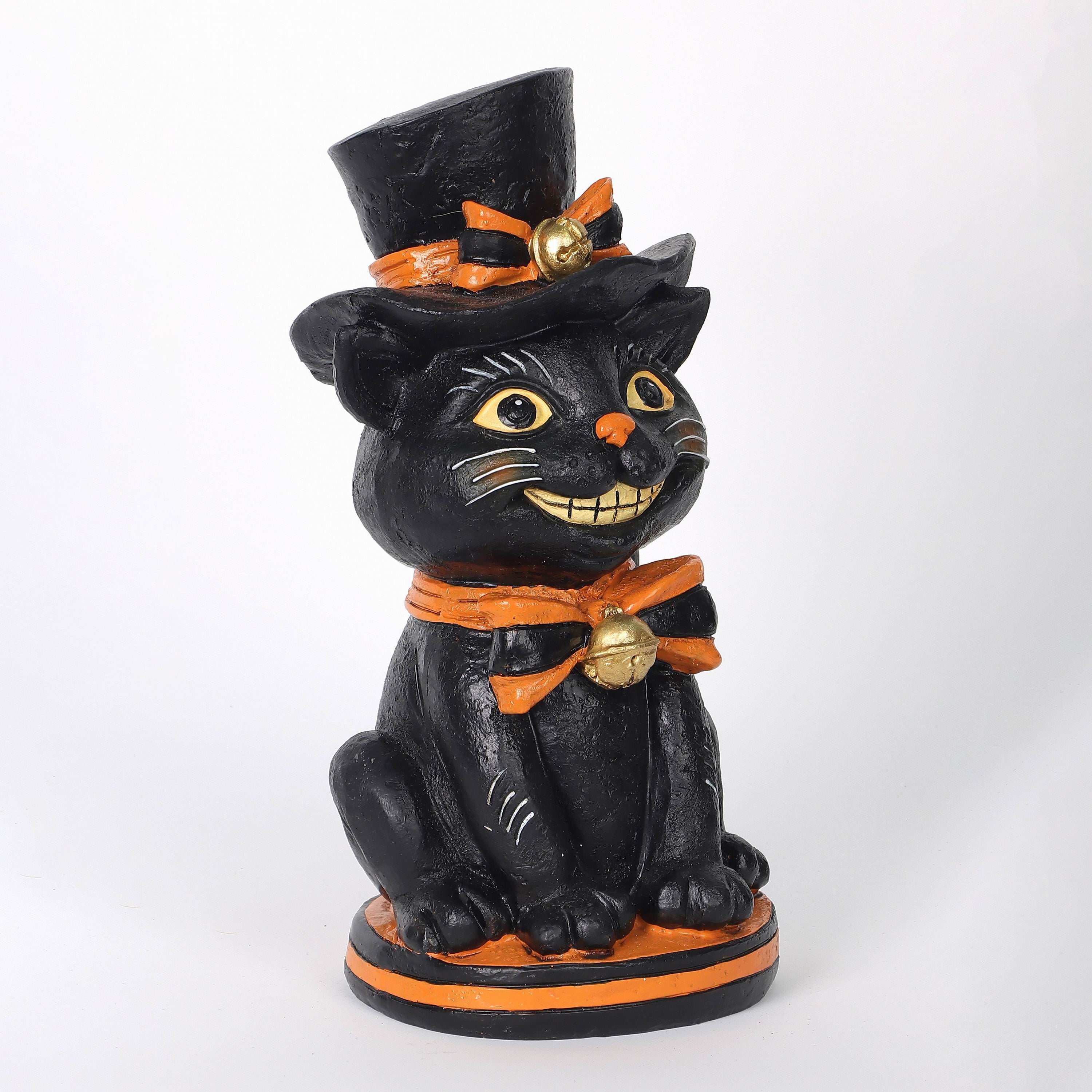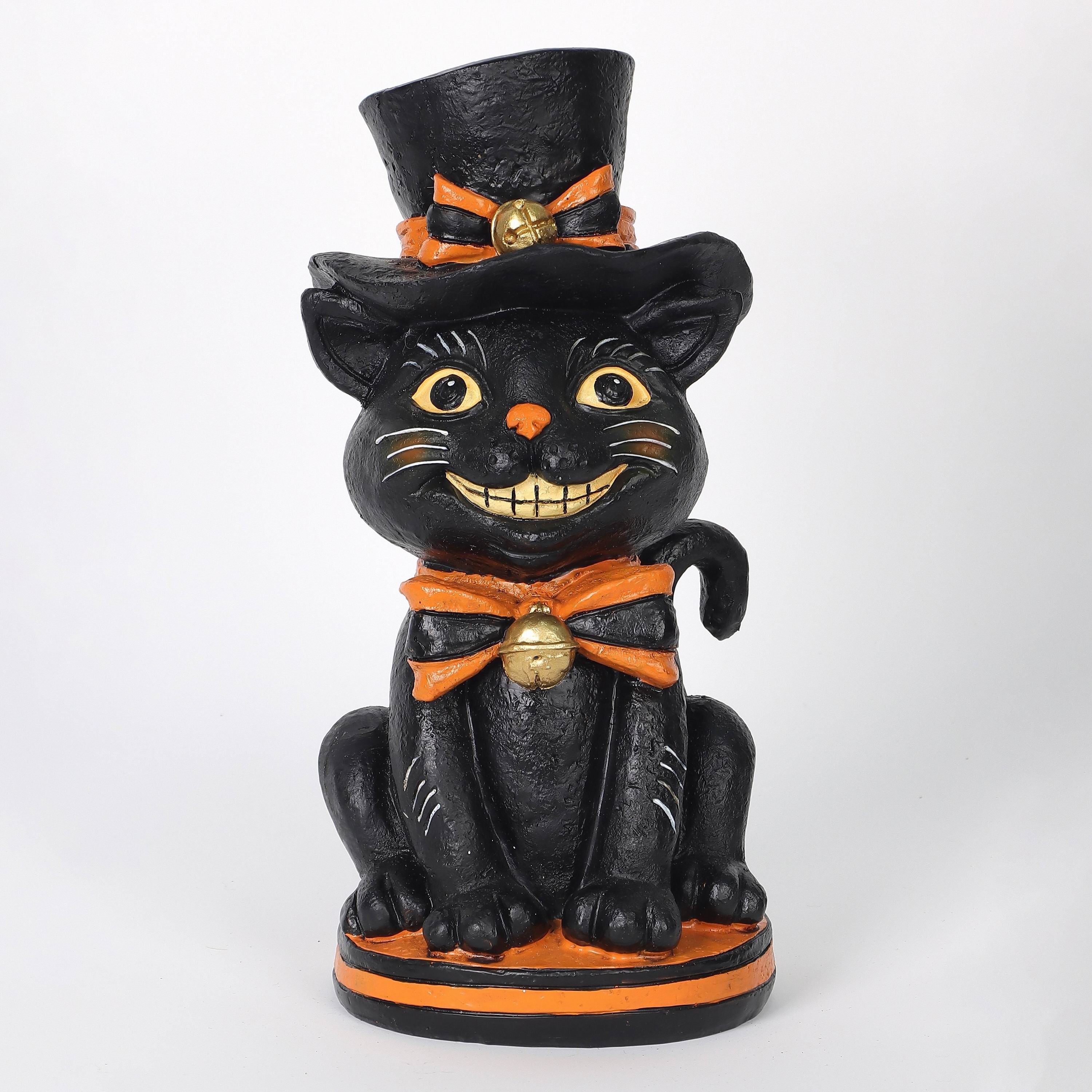 This 9.75-inch Halloween tabletop cat features detailed craftsmanship and a sleek silhouette, making it a sophisticated addition to your seasonal decor. Its compact size is perfect for mantels, shelves, or desks, while its design embodies classic Halloween motifs with expert precision. Durable and stylish, this piece enhances any display with refined charm and festive elegance.