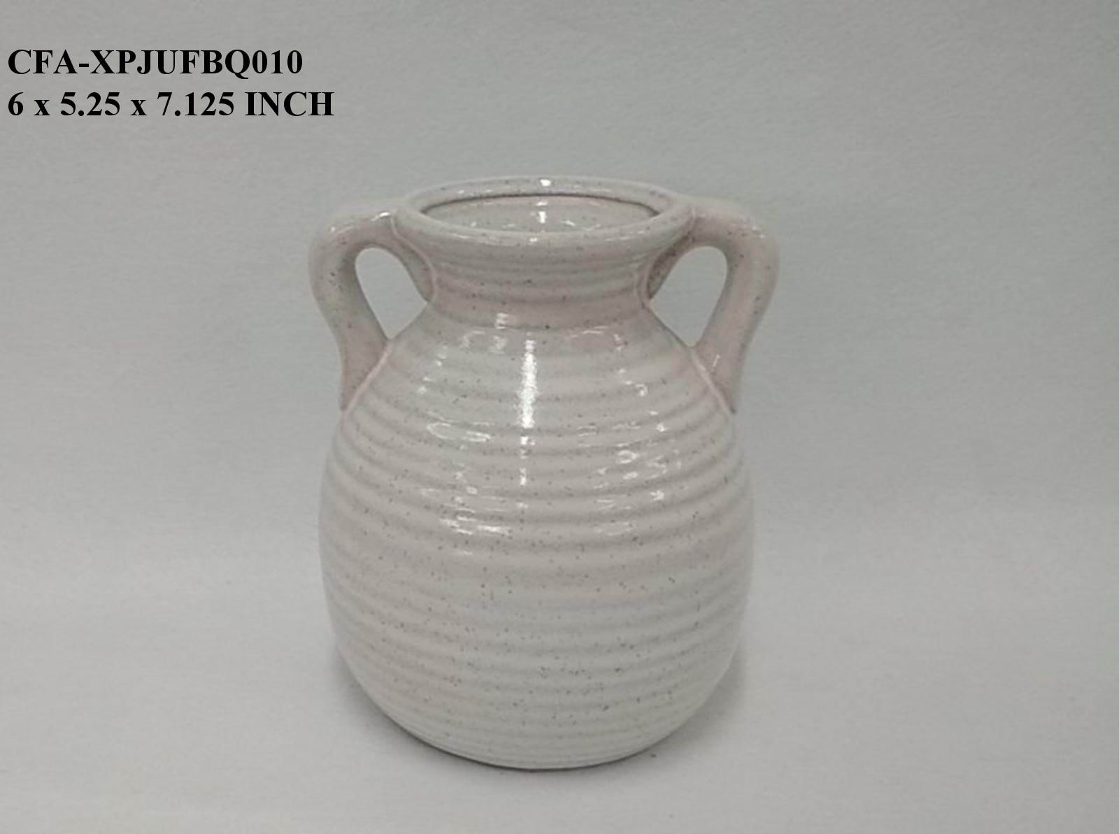 6.0x5.25x7.125 This Ceramic Floral Vase with Handle combines expert craftsmanship with functional design. Featuring a smooth ceramic finish and delicate floral accents, it offers an elegant vessel for displaying arrangements. The integrated handle adds practicality, making it easy to move while enhancing its refined aesthetic, perfect for sophisticated interior settings.