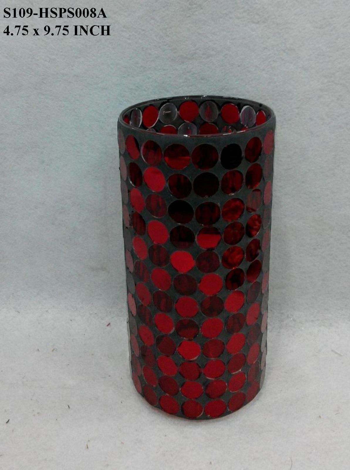 Make a bold statement with this tall glass candle holder in dark brown adorned with striking red polka dots. Standing 9.75" high with a 4.75" diameter, its impressive vertical presence commands attention while the playful dot pattern adds personality and warmth. The rich color contrast creates visual intrigue, appealing to those who appreciate distinctive decorative pieces with character. Perfect for creating dramatic lighting displays on mantels, console tables, or shelving arrangements, this holder bridges functional ambiance with artistic expression. The generous height ensures visibility and impact without overwhelming your space, making it ideal for layered decor schemes. An exceptional accent for discerning collectors seeking to introduce whimsical sophistication and contemporary flair to their interiors.