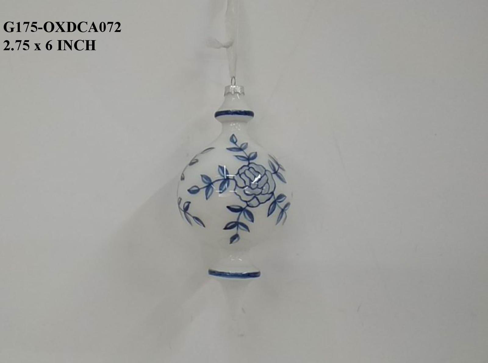 6" Ceramic White/Blue Orn