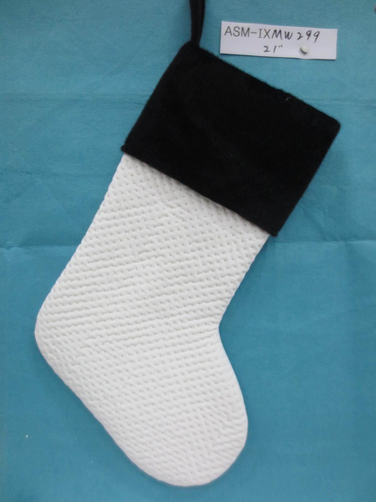 This 21" fabric stocking combines classic black and white styling with seasonal versatility. Crafted from quality fabric, it features a timeless color palette that coordinates effortlessly with any holiday decor scheme. The generous 21" length provides ample space for filling with gifts, treats, or decorative accents. Whether hung from a mantelpiece, staircase, or displayed as part of a festive arrangement, this stocking delivers understated elegance. Its neutral tones ensure it complements both traditional and modern interiors, making it a reliable choice year after year.