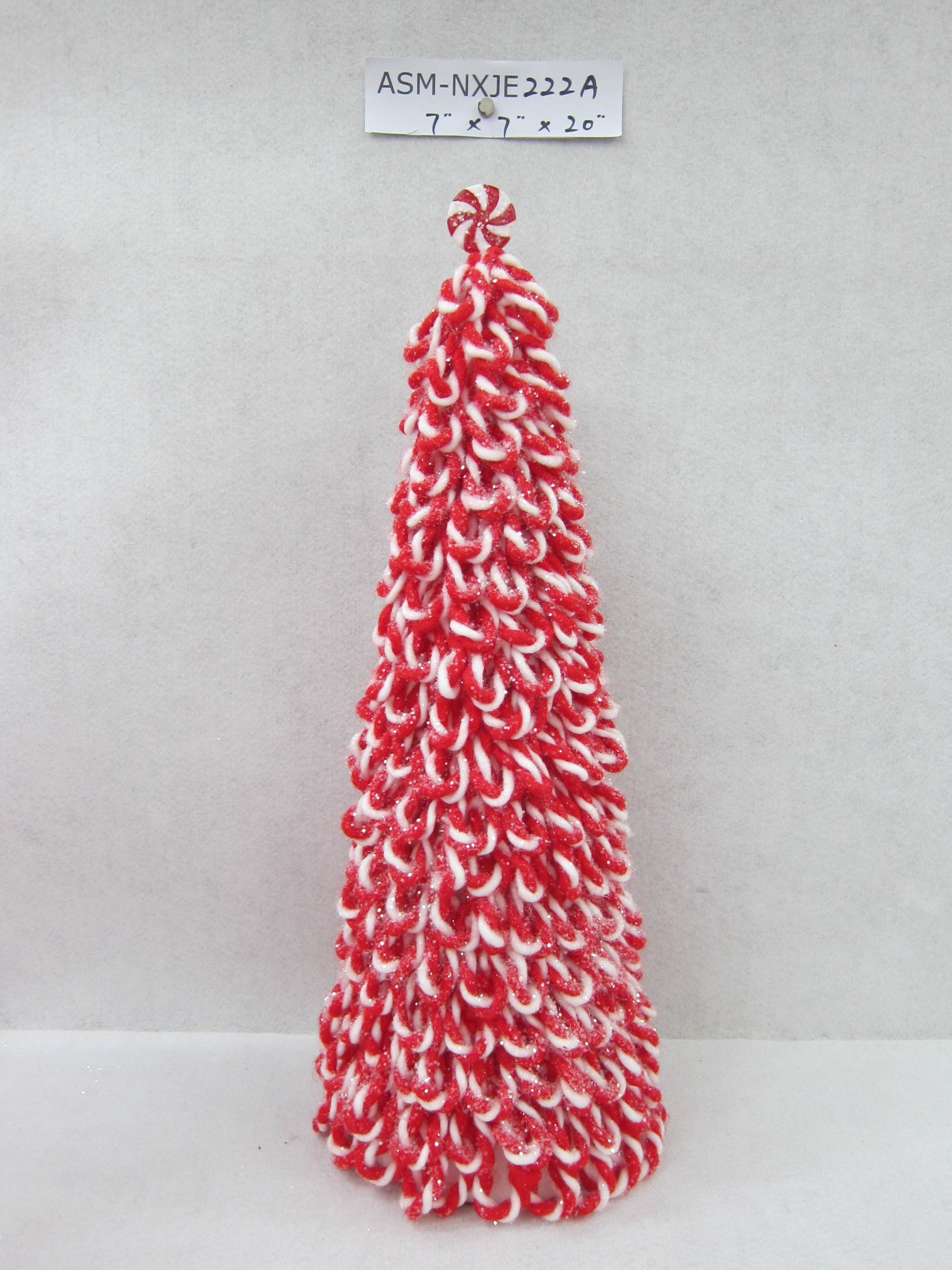7x7x20 The Fabric Red/White Table Top Cone Tree features meticulous craftsmanship in a classic red and white color combination. Its structured cone shape provides a modern interpretation of traditional holiday decor, while the high-quality textile materials ensure durability and a refined finish, making it an elegant centerpiece for seasonal displays.