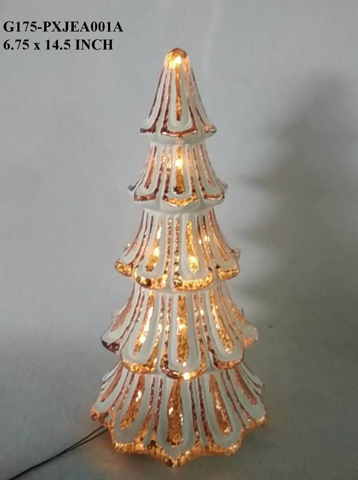 Discover luminous elegance with this tall glass tabletop tree in soft whitish tones infused with warm golden undertones. Standing 14.5" in height with a 6.75" diameter base, its substantial vertical presence creates a striking focal point. The delicate color palette evokes refined sophistication while the golden undertones introduce warmth and luxury to your space. The glass construction allows light to interact beautifully with the subtle hues, creating an ethereal, luminous quality. Perfect for mantels, shelving, or console displays where you want to introduce architectural presence with understated artistry, this tree works beautifully as a standalone statement piece. Ideal for those seeking distinctive accents that celebrate refined minimalism with organic warmth. An exceptional piece for discerning collectors who appreciate timeless design infused with contemporary elegance and understated luxury.