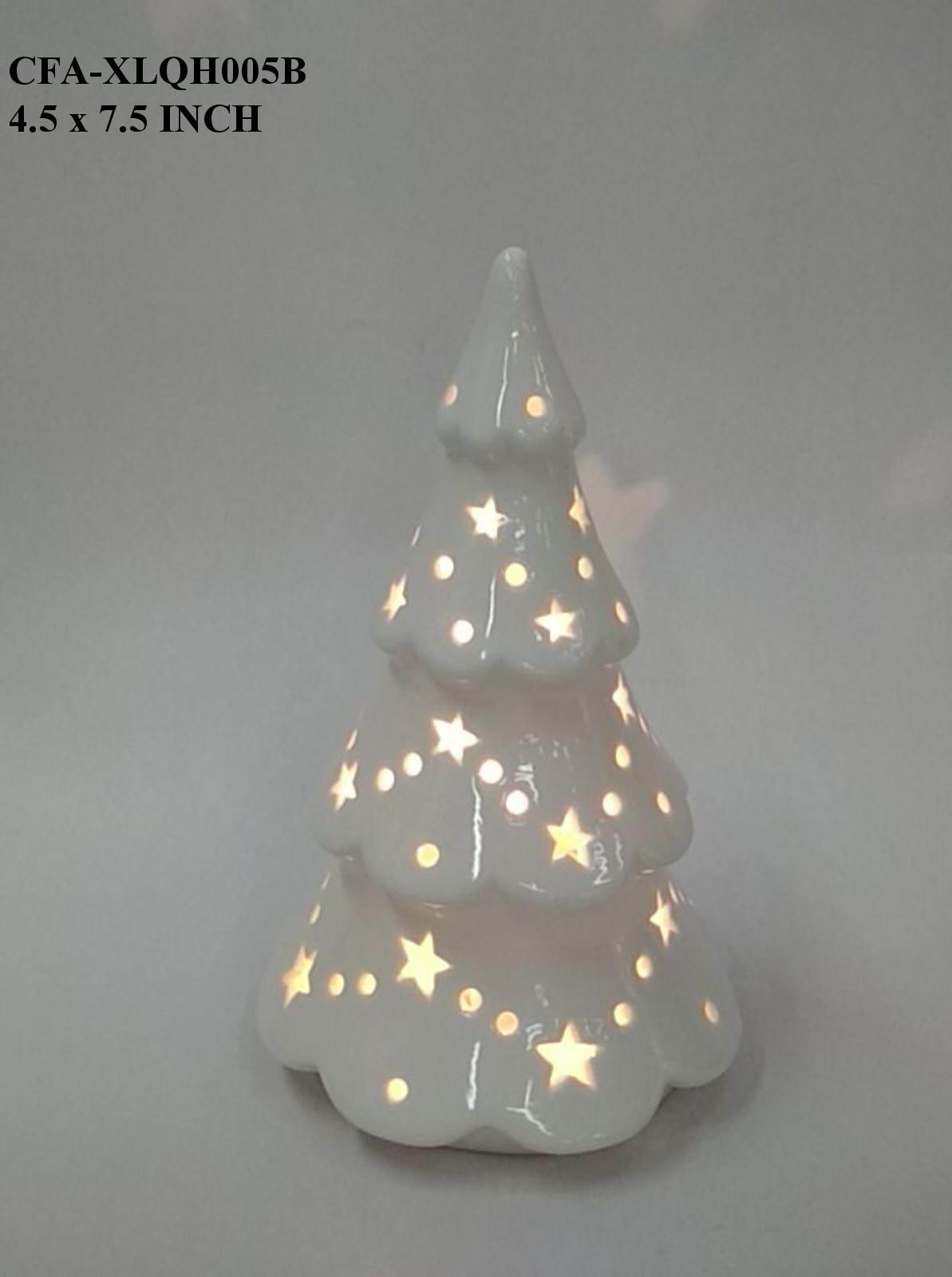 4.5x7.5x0.0 This ceramic lighted tabletop tree combines elegant craftsmanship with integrated illumination, creating a refined centerpiece for your holiday decor. Its smooth ceramic finish complements the warm glow of built-in lights, providing a sophisticated and inviting ambiance. Designed for durability and style, it enhances seasonal settings with timeless charm