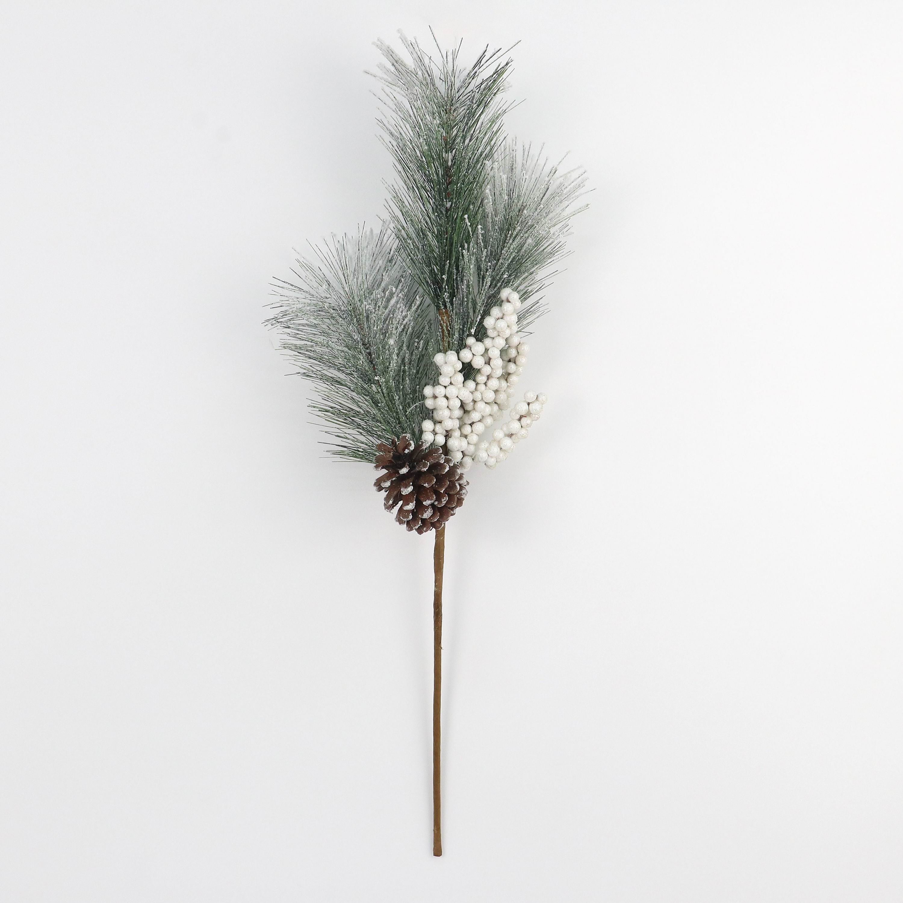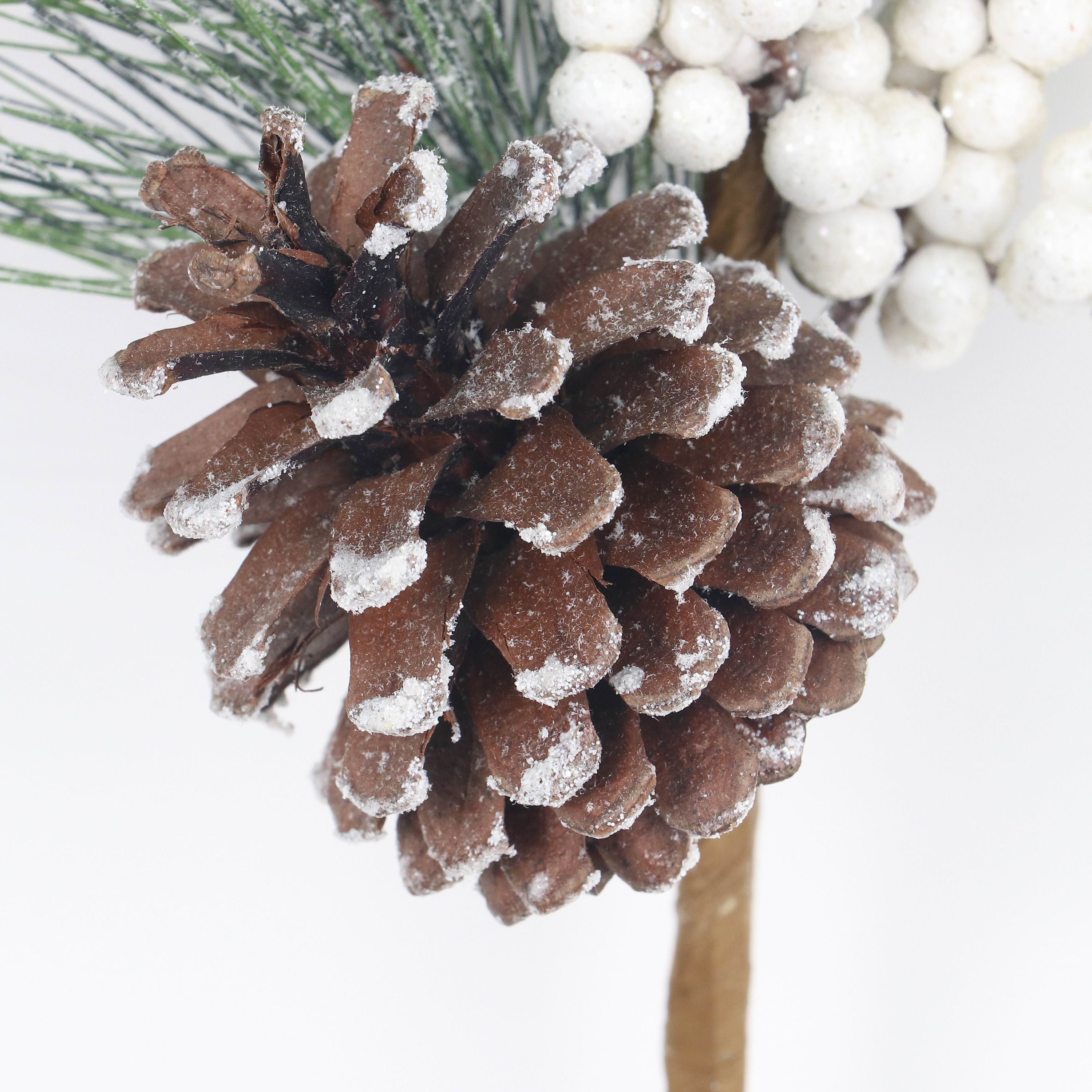8"W X 5.5"D X 22"H This natural pinecone with PVC pick combines authentic rustic texture with practical design. The genuine pinecone provides detailed natural beauty, while the sturdy PVC pick ensures easy and secure placement in floral arrangements or holiday decor. Expertly crafted, it adds a refined, nature-inspired accent to seasonal displays.
