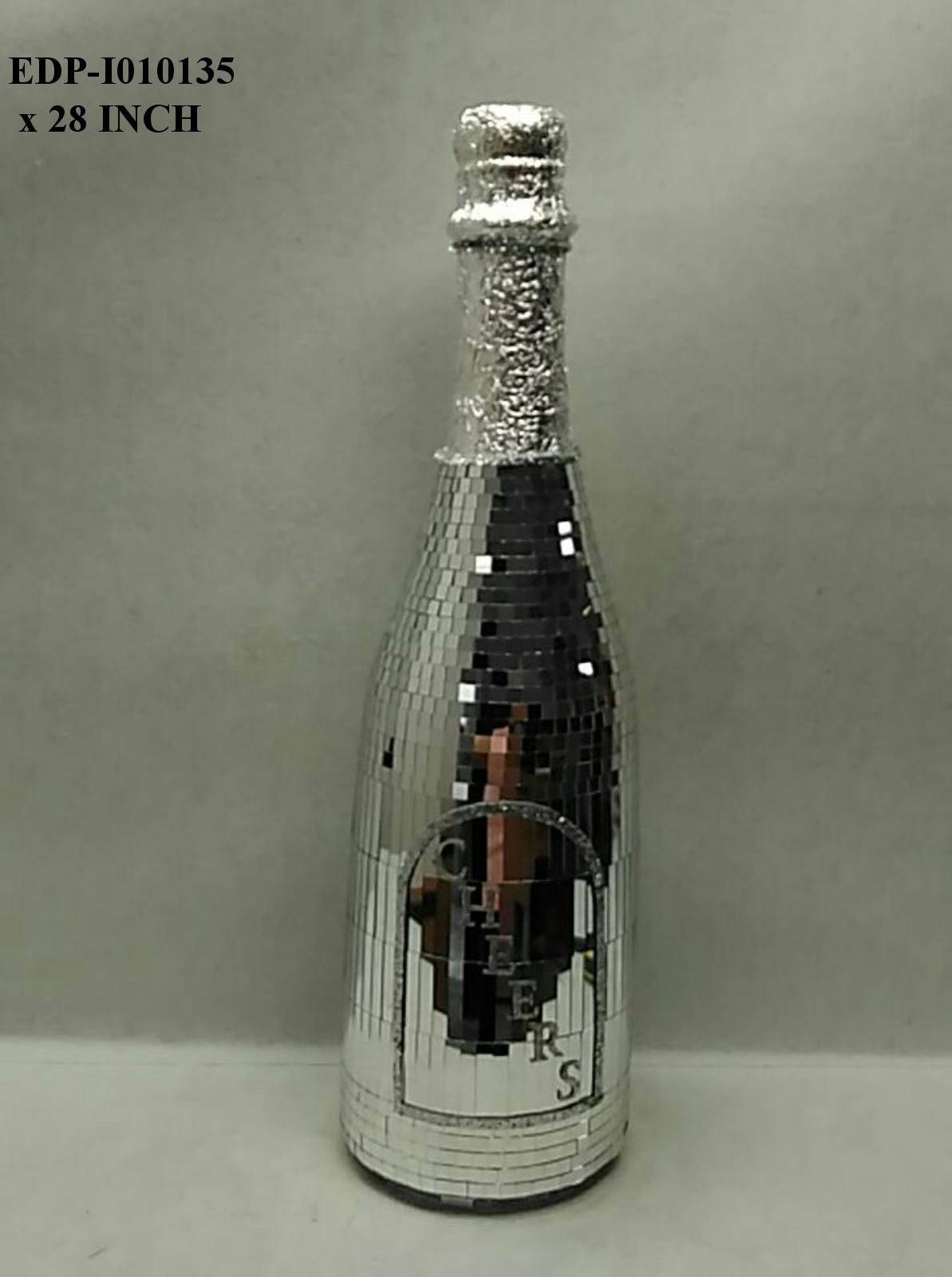 28.0" The Styro Silver Table Top Bottle offers a striking decorative accent with its sleek silver finish and substantial height. Crafted from lightweight styrofoam, it provides ease of placement and stability for tabletops or display areas. Its modern metallic sheen adds a sophisticated touch to seasonal or contemporary decor, making it a versatile centerpiece for home or office environments.