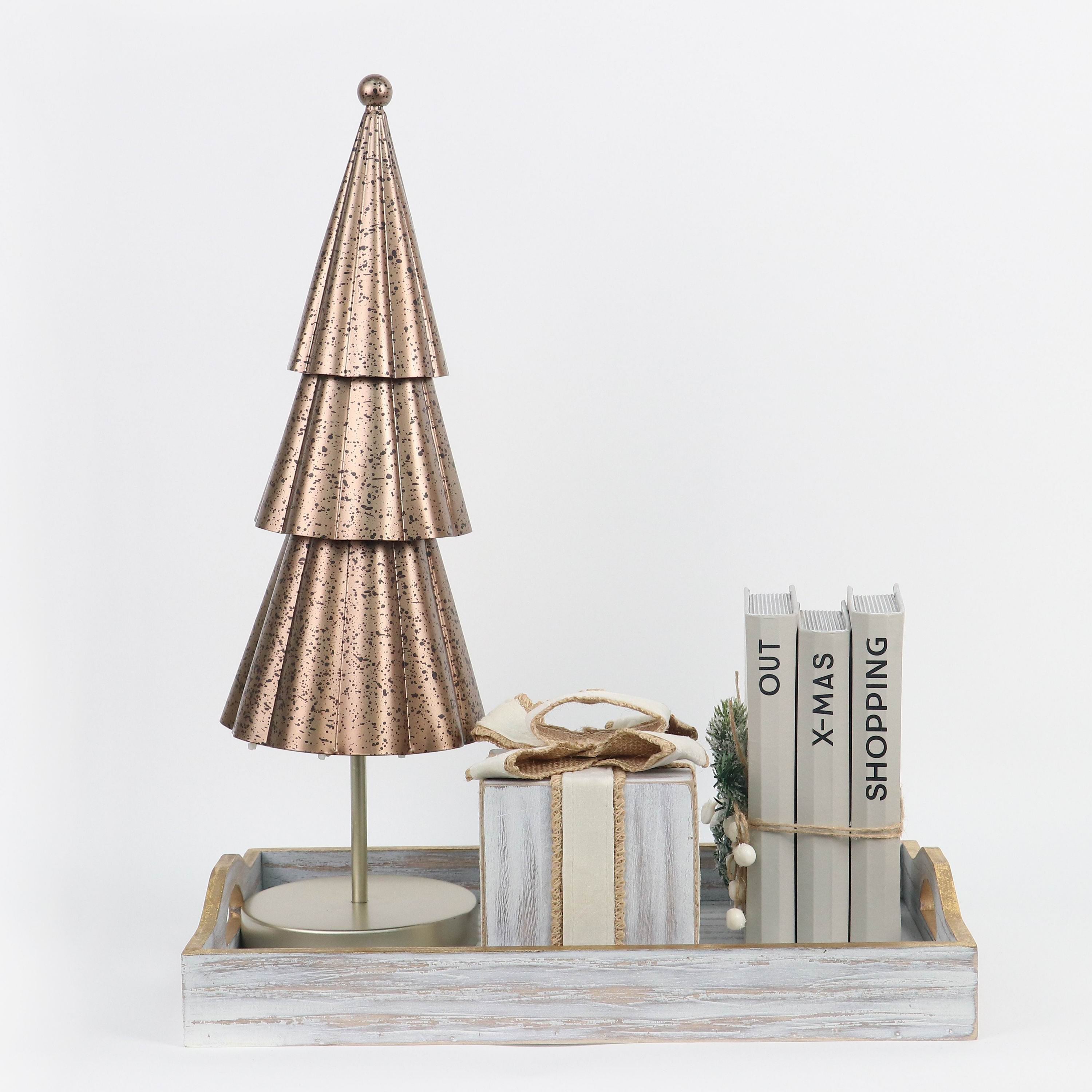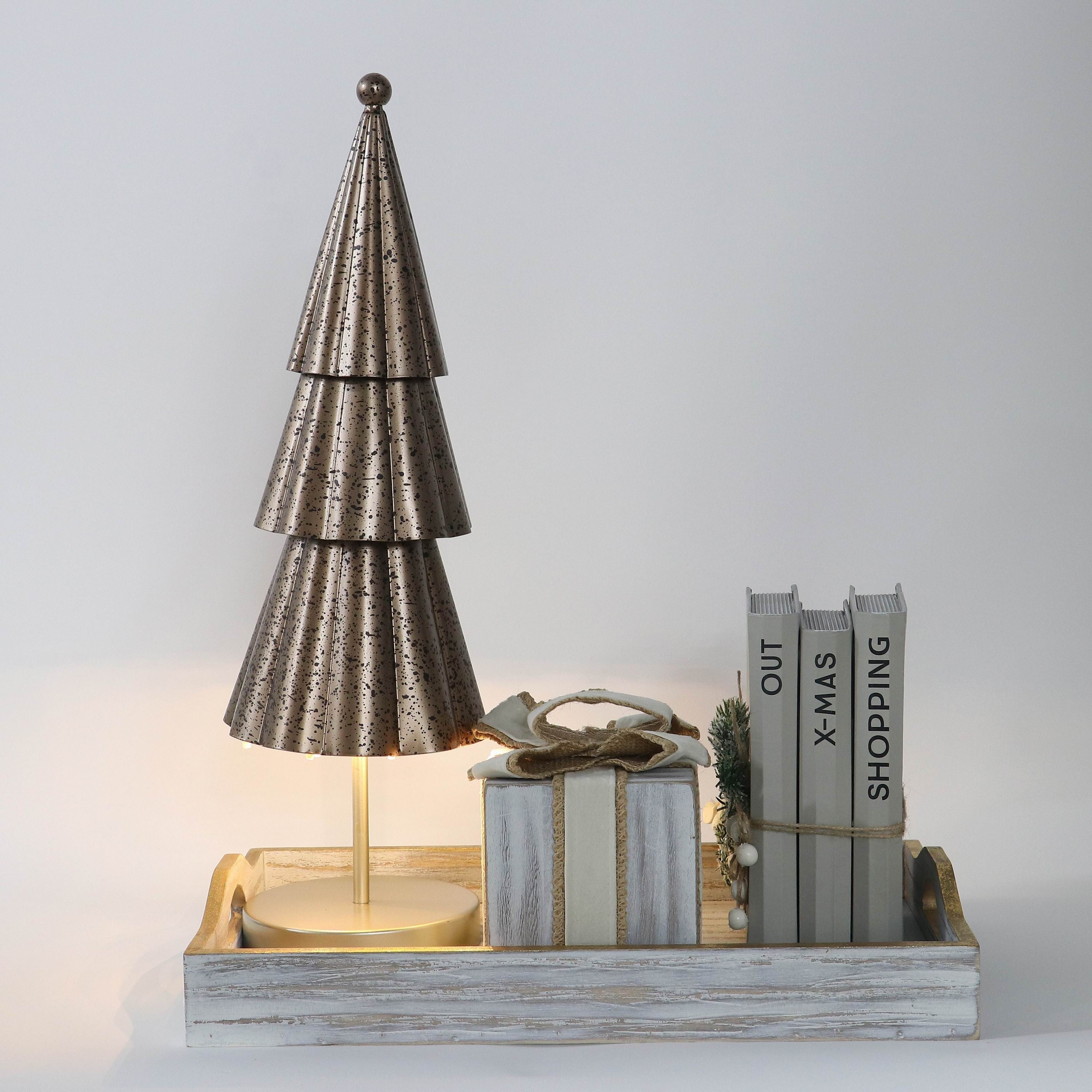 Book: 7.87"x5.51"x4.53"H The Prelit Tree Centerpiece is expertly crafted to serve as a refined and illuminated focal point for your holiday decor. Featuring integrated lighting, it emits a warm, inviting glow that enhances any table or display with sophisticated seasonal elegance and enduring quality.