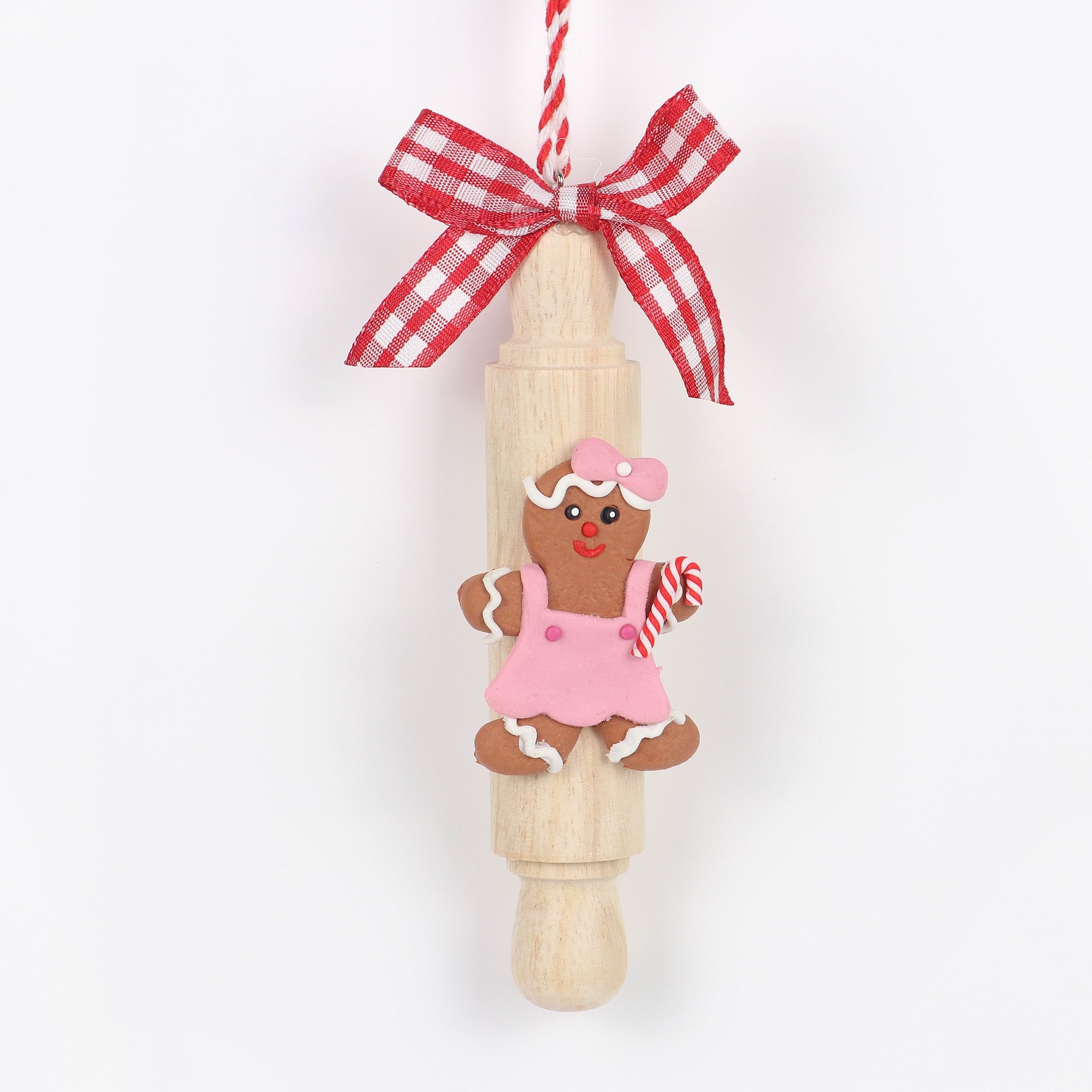 1.5"W X 1.25"D X 5.25"H This cinnamon gingerbread ornament featuring a girl design showcases meticulous craftsmanship and festive detail. Crafted to evoke the warmth and nostalgia of holiday traditions, it combines textured artistry with subtle cinnamon tones, adding an elegant and aromatic accent to your seasonal decor. Durable and refined, it enhances any holiday setting with timeless charm.