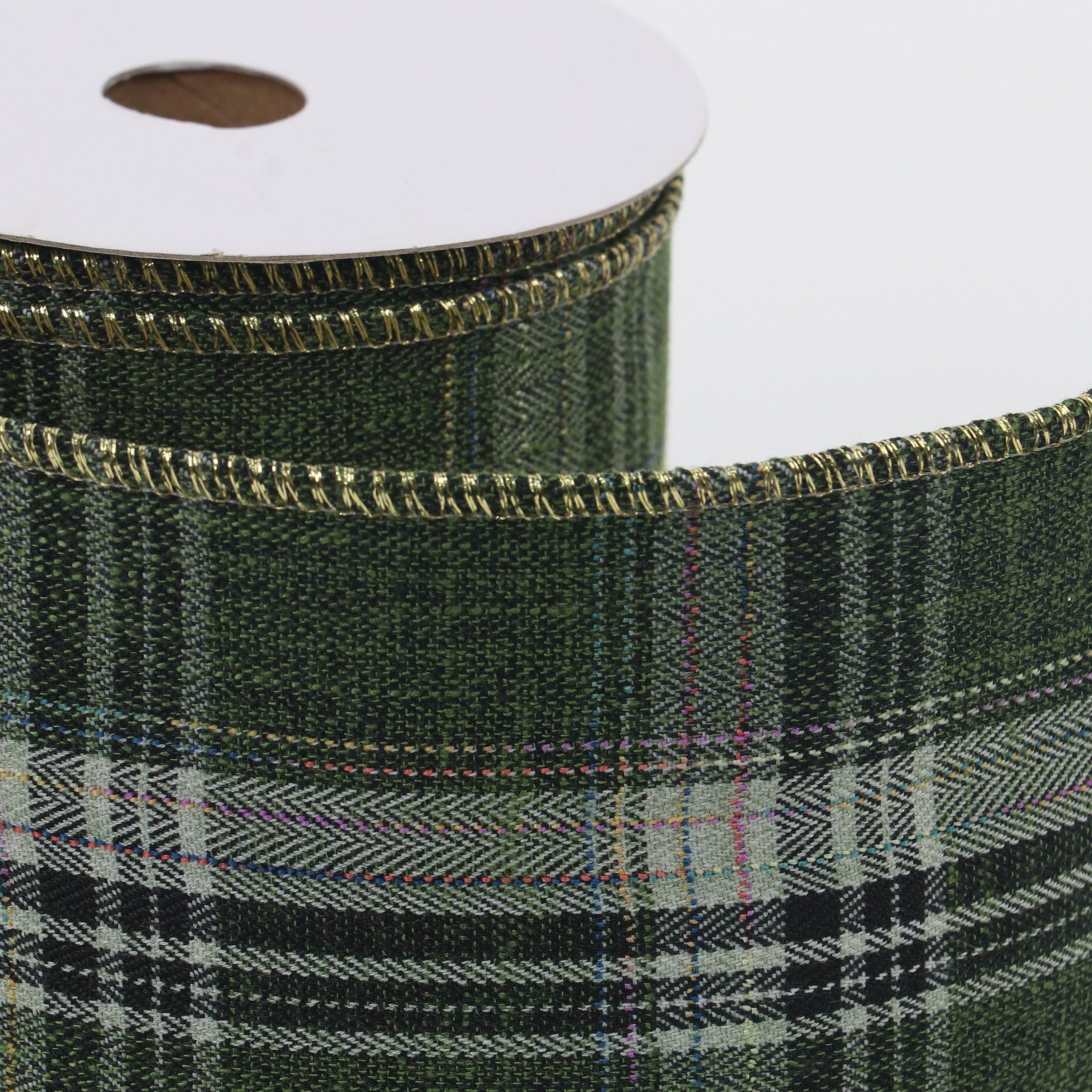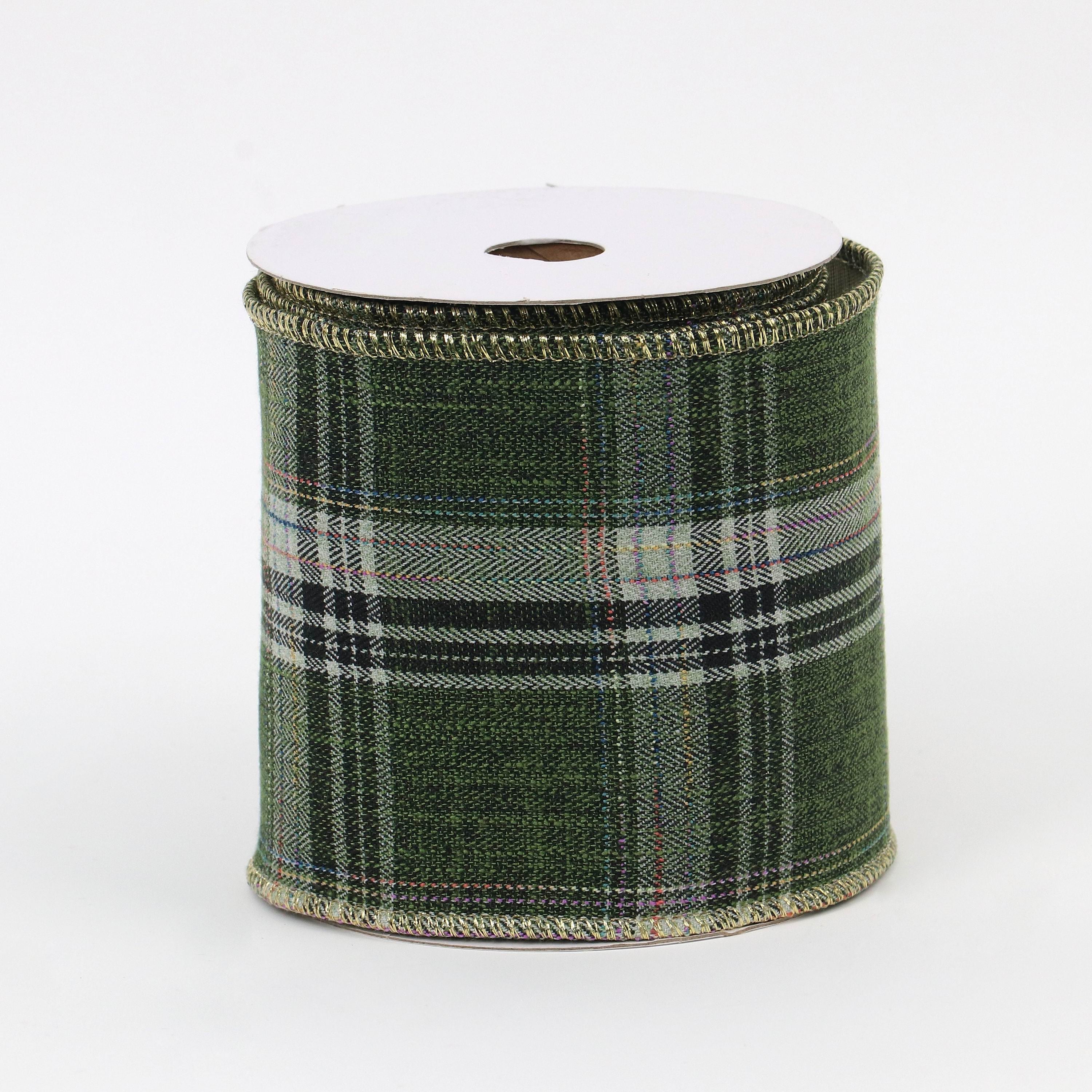 4"X5Y The Green and Black Plaid Ribbon showcases a traditional tartan pattern woven into high-quality fabric, combining durability with classic style. Ideal for gift wrapping, floral designs, and seasonal decorations, this ribbon adds a refined, timeless accent that enhances any project with subtle sophistication.