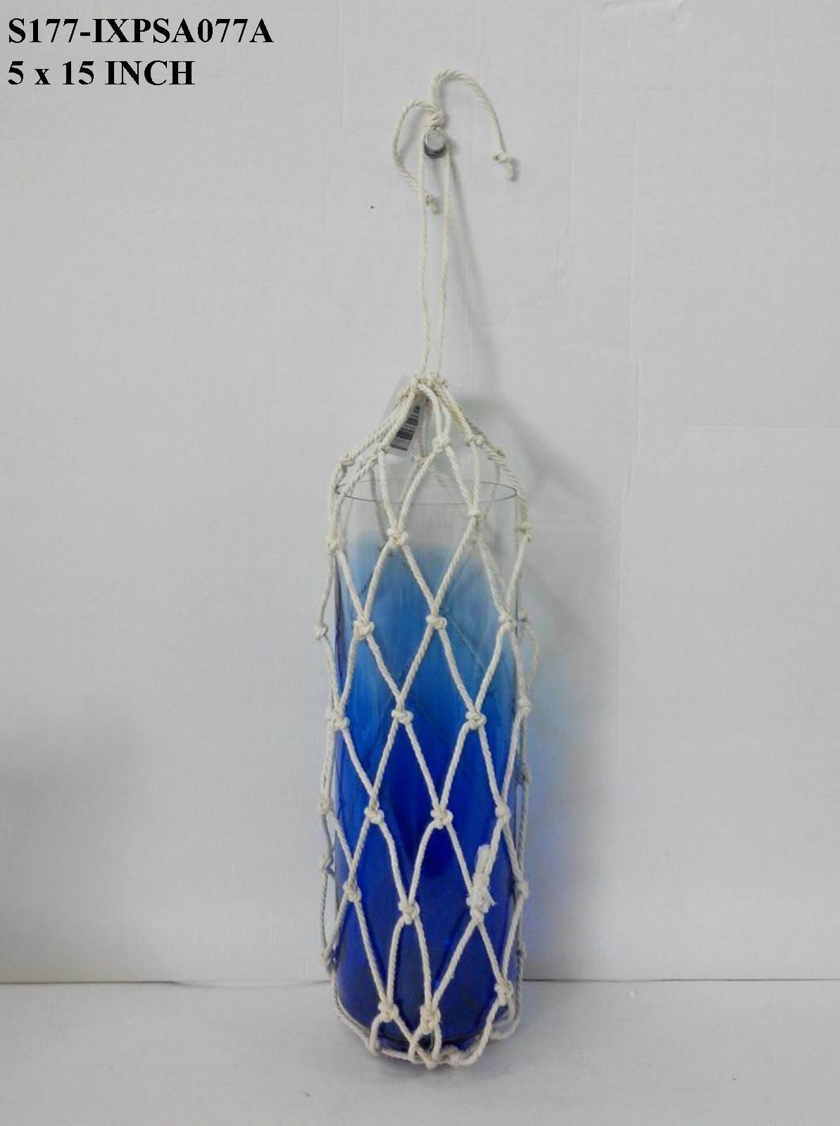 5.0x15.0x0.0 This blue glass hanging candle holder is expertly crafted from high-quality, durable glass designed to safely contain candlelight while suspended elegantly. Its vibrant blue tone filters light to create a calming, atmospheric glow. Combining secure construction with sophisticated design, it enhances any space with elevated ambiance and refined style.