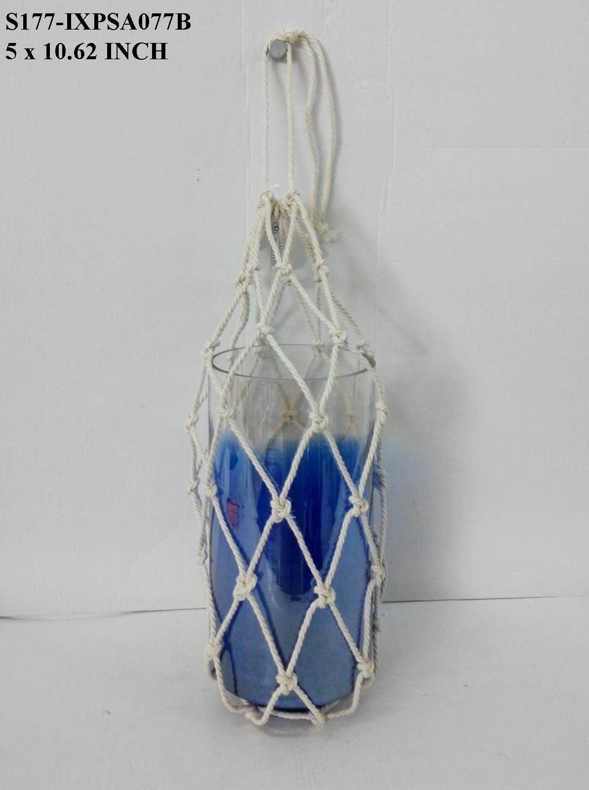 5.0x10.625x0.0 This blue glass hanging candle holder is expertly crafted from high-quality, durable glass to ensure safe and secure candle display. Its rich blue hue softly filters light, creating a serene and elegant ambiance. Designed to combine aesthetic appeal with reliable function, it enhances any space with sophisticated, suspended illumination.