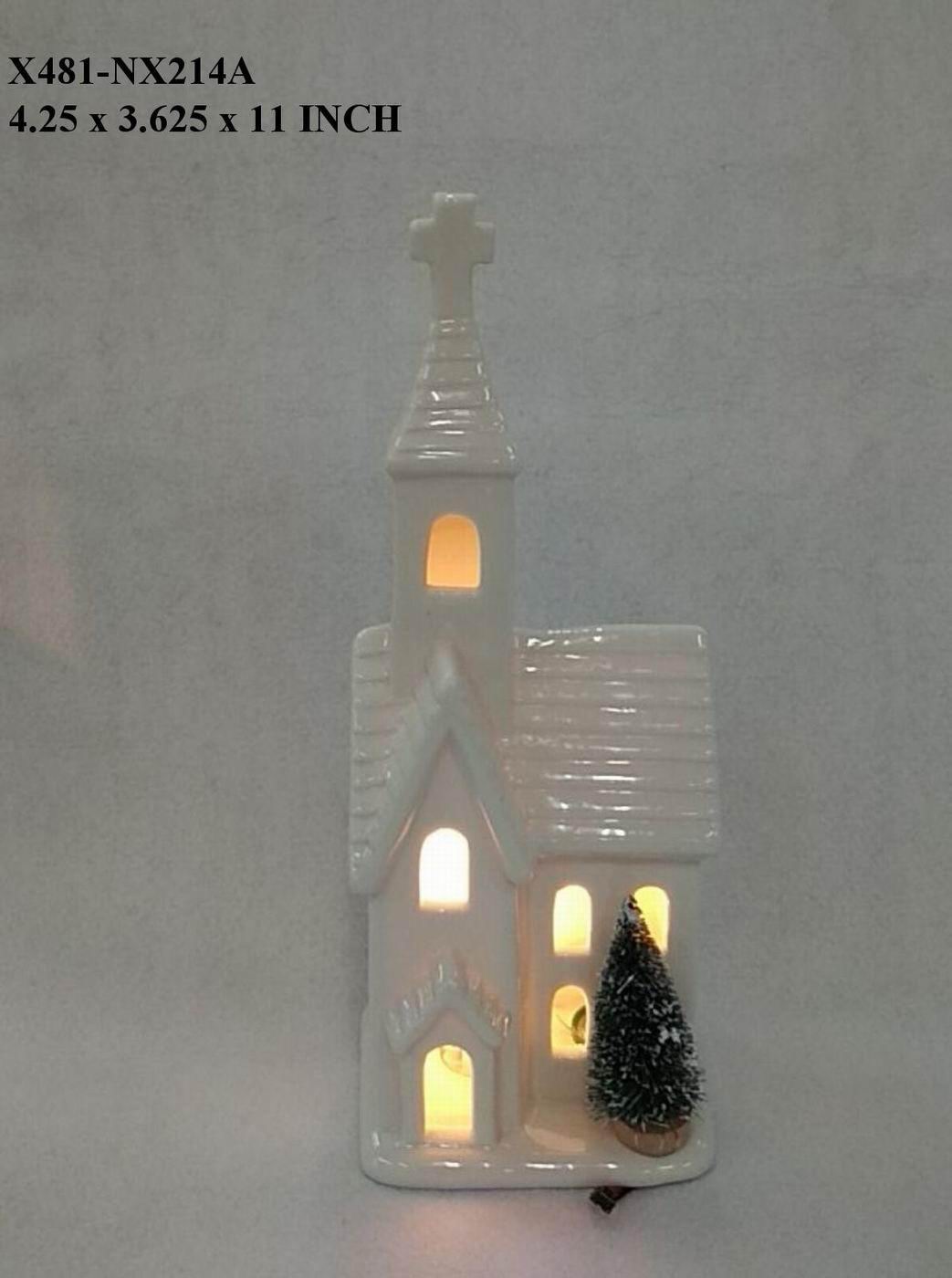 4.25x3.625x11.0 This ceramic lighted house is expertly crafted to provide both aesthetic appeal and subtle illumination. Made from high-quality ceramic, it offers durability and a smooth finish that enhances any decor. The built-in light softly illuminates the house, creating a cozy atmosphere ideal for tabletops, shelves, or mantel displays. Its elegant design and reliable construction make it a sophisticated accent piece for your home.