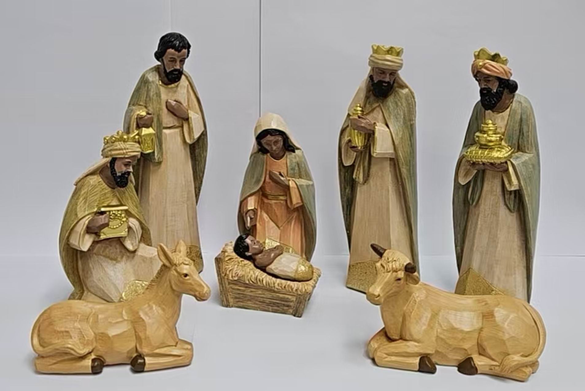 This Set of 9 Nativity figures is expertly crafted to represent the traditional Christmas story with detailed design and quality materials. Each piece contributes to a harmonious and elegant display, offering a sophisticated and meaningful addition to your holiday decor.