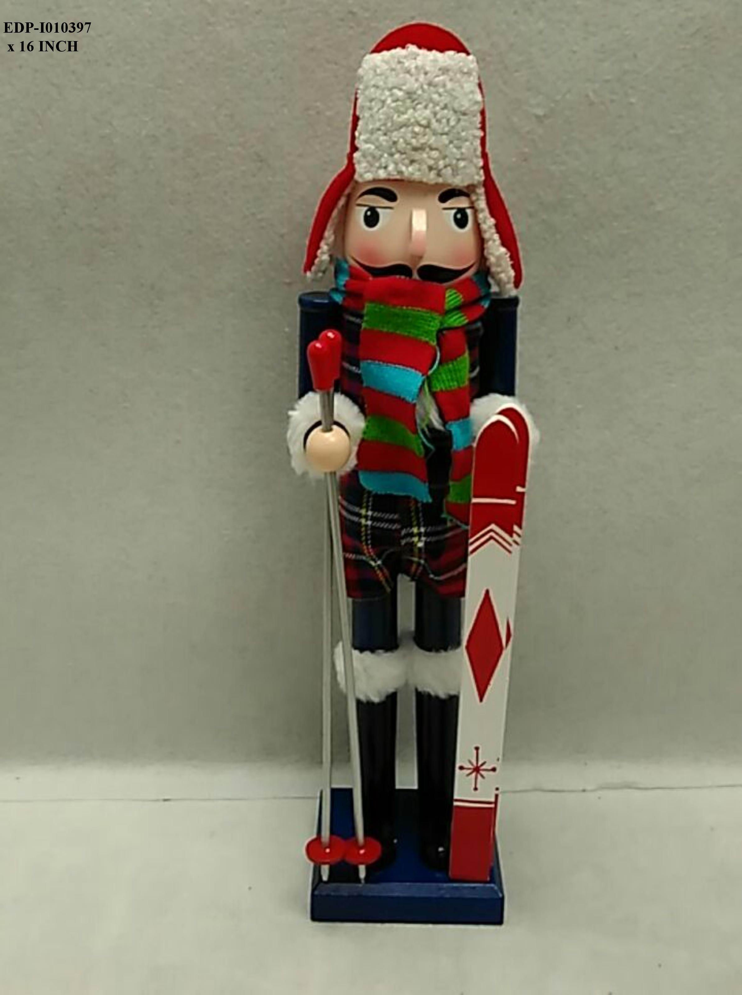 This 16-inch wooden skiing nutcracker captures the spirit of winter sports with distinctive character and functional design. Carved from quality wood, the figure depicts an athlete in dynamic skiing pose while delivering reliable nutcracking performance. The detailed craftsmanship brings personality to kitchen countertops and holiday displays alike. An excellent choice for sports enthusiasts and collectors seeking nutcrackers that combine practical utility with thematic artistry, making it a memorable accent piece that celebrates both culinary function and winter recreation.