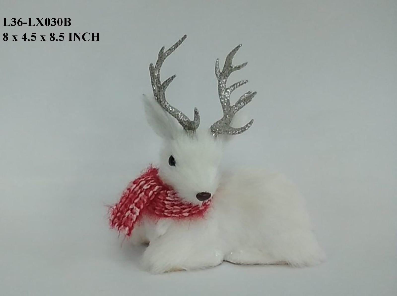 8.0x4.5x8.5 This elegant sitting deer showcases refined craftsmanship with its pristine white finish and graceful seated posture. The coordinating scarf adds a sophisticated accent that enhances its decorative appeal. Constructed from lightweight styrofoam, it's both durable and easy to display in any setting. Whether adorning holiday displays, shelf arrangements, or seasonal vignettes, this piece brings understated elegance and natural beauty to your interior spaces. Its neutral palette ensures seamless integration with diverse decor styles.
